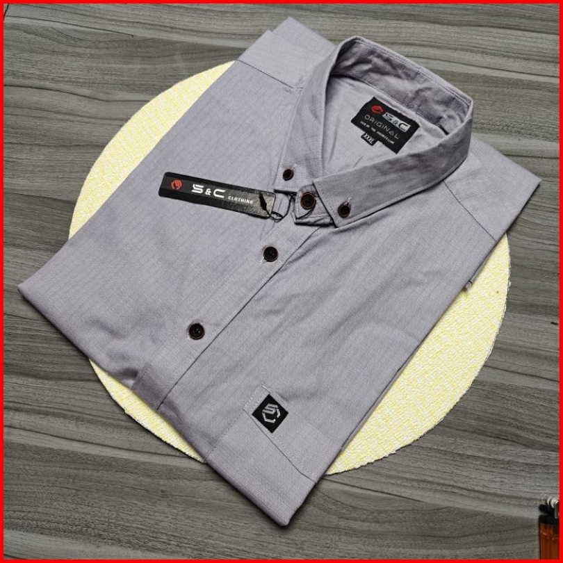 Hem Cowok Kemeja Jumbo Big Size Lengan Pendek Full Cotton Sigaret