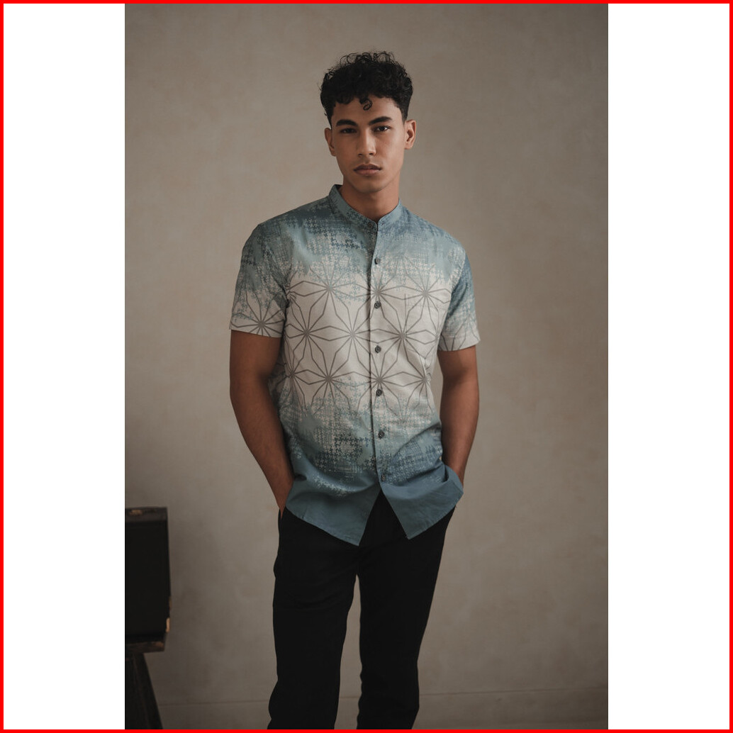 Larusso Khair Collection - Kemeja Koko Printing Pria Lengan Pendek - Vinrar