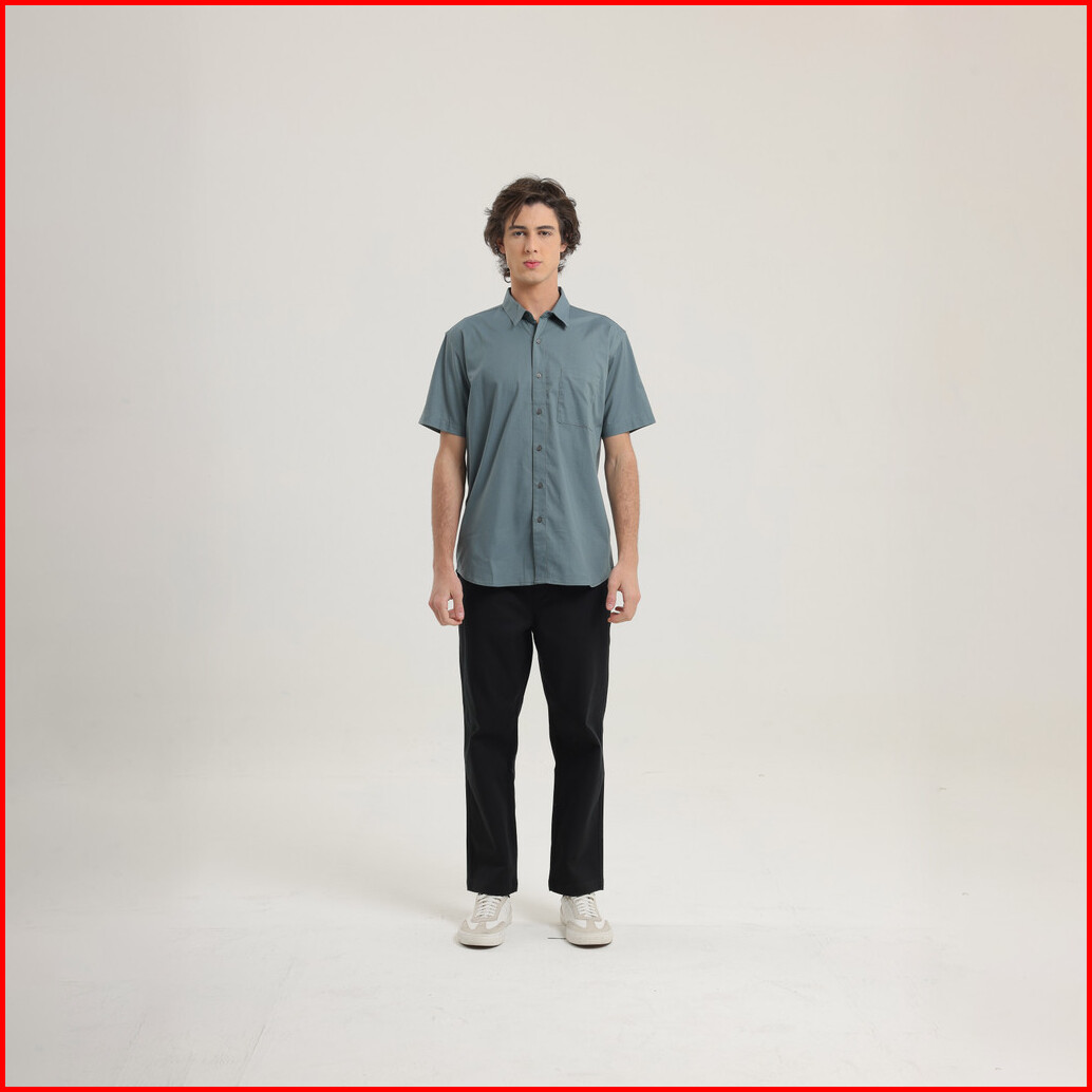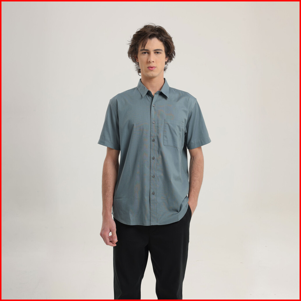 Larusso Kemeja Pria Basic Oxford Lengan Pendek - Carbon Blue