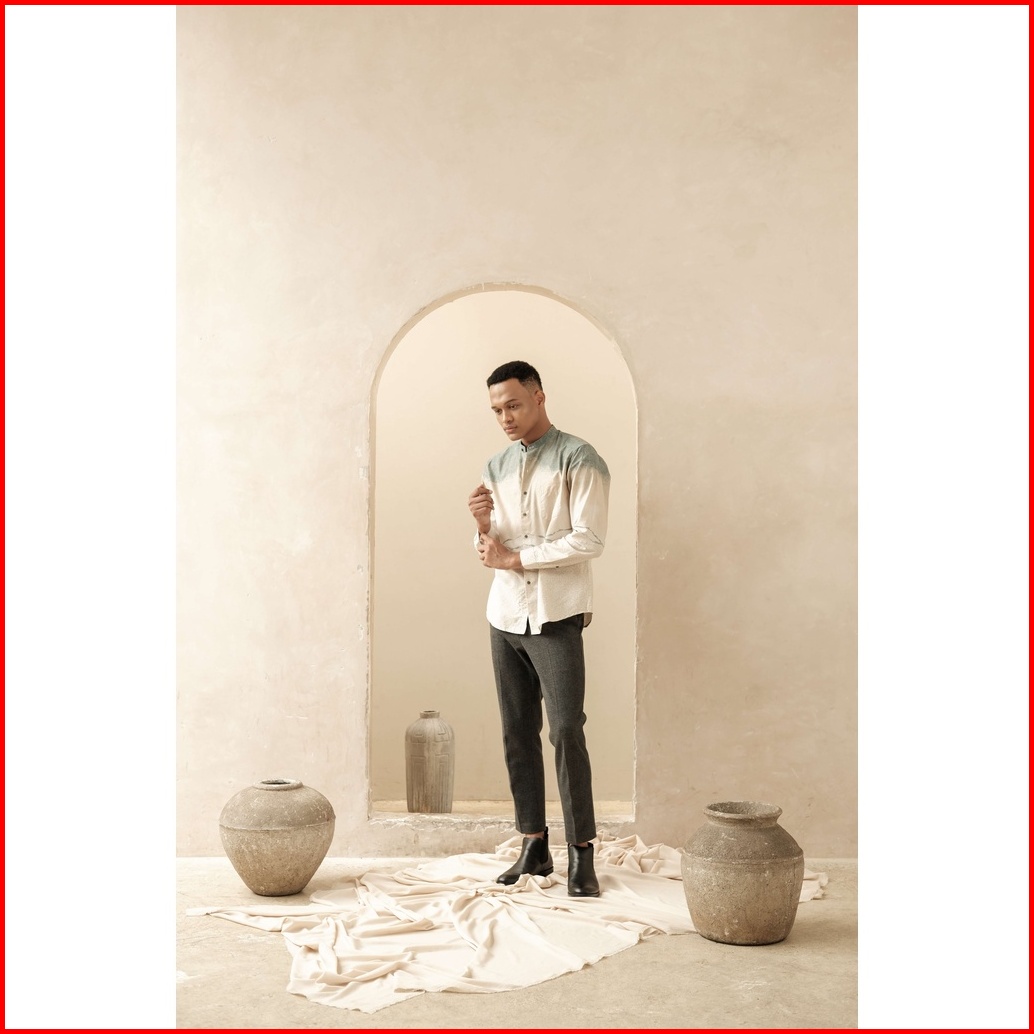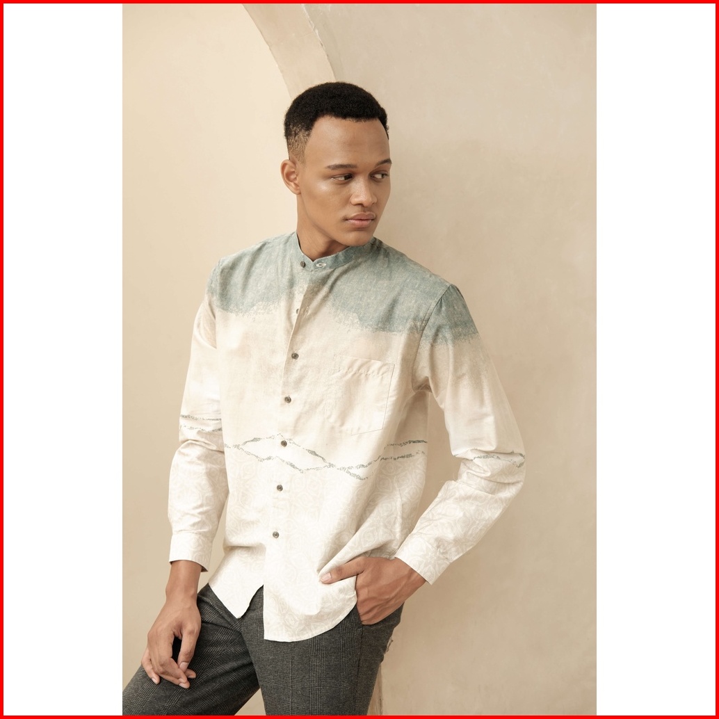 Larusso Big Size Kemeja Koko Printing Panjang Kalley - Beige L002