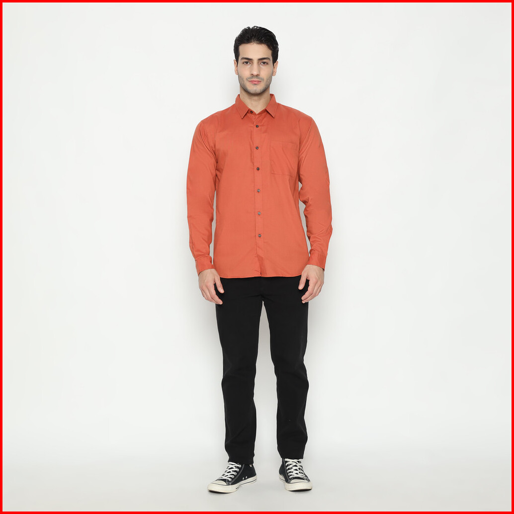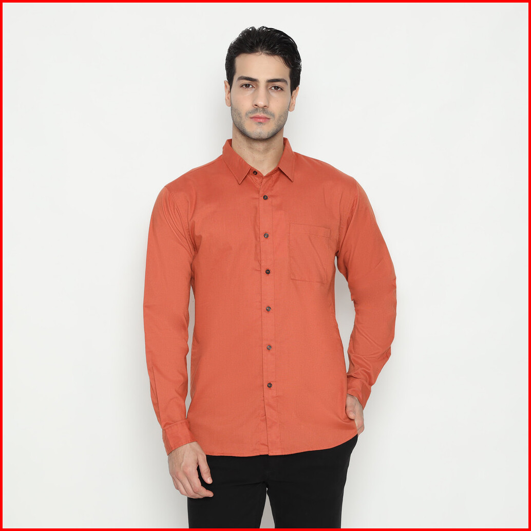 Larusso Kemeja Pria Basic Oxford Lengan Panjang - Orange
