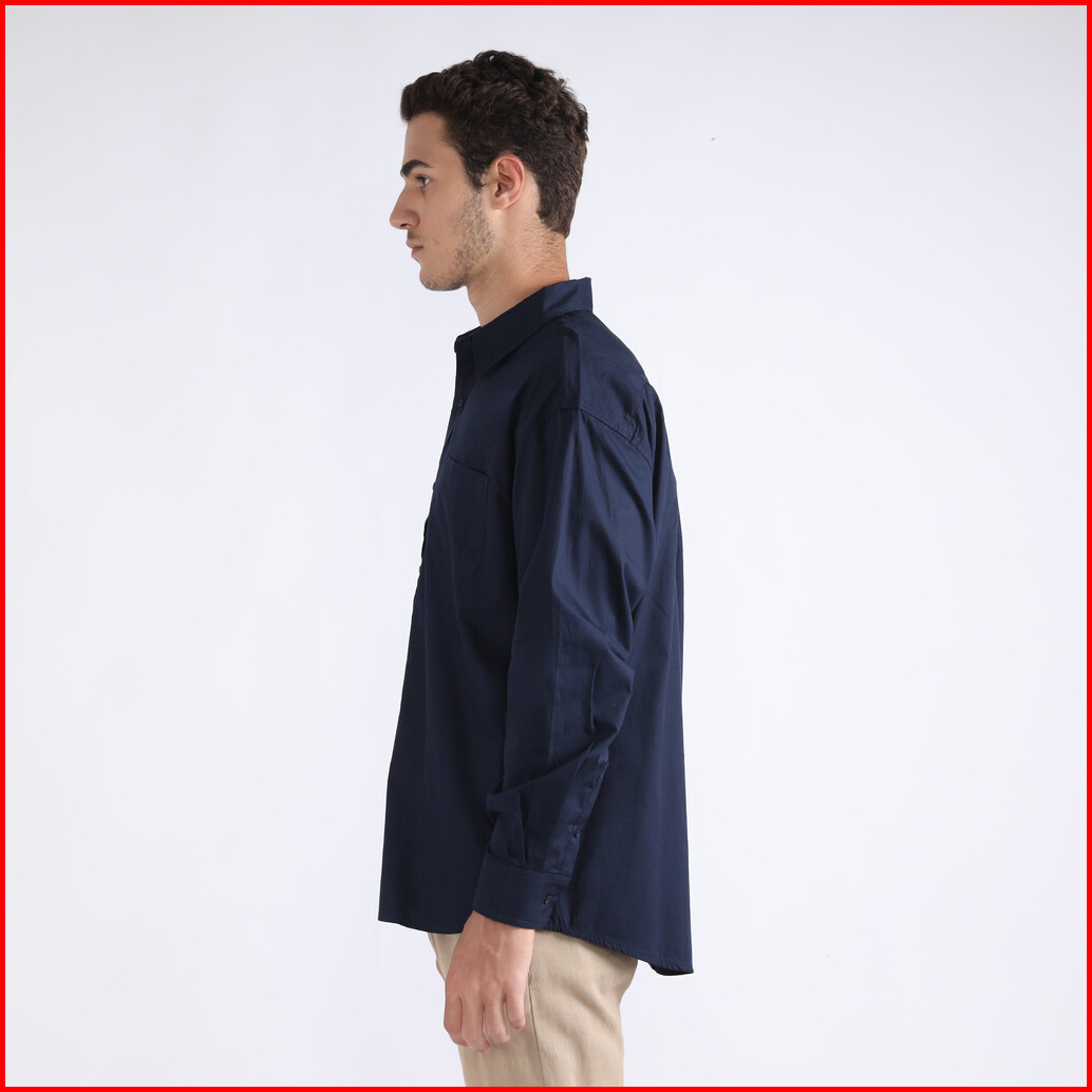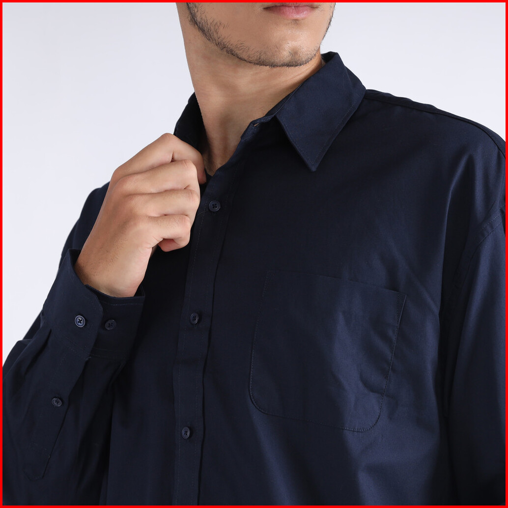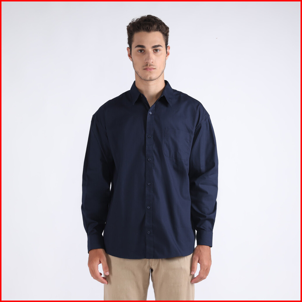Facility By Larusso - Kemeja Pria Basic Poplin Oversize Lengan Panjang - Navy
