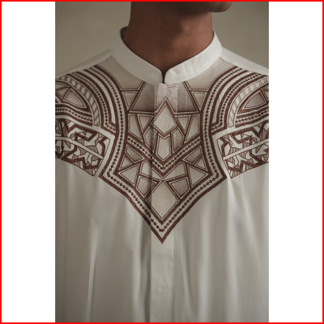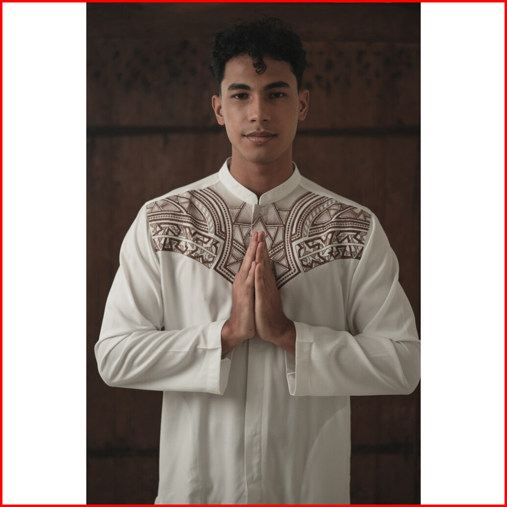 Larusso Kemeja Koko Bordir Lengan Panjang Pria - White Maroon
