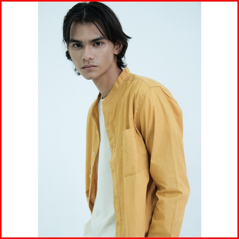 Larusso Kemeja Basic Kerah Shanghai Panjang - Mustard K414
