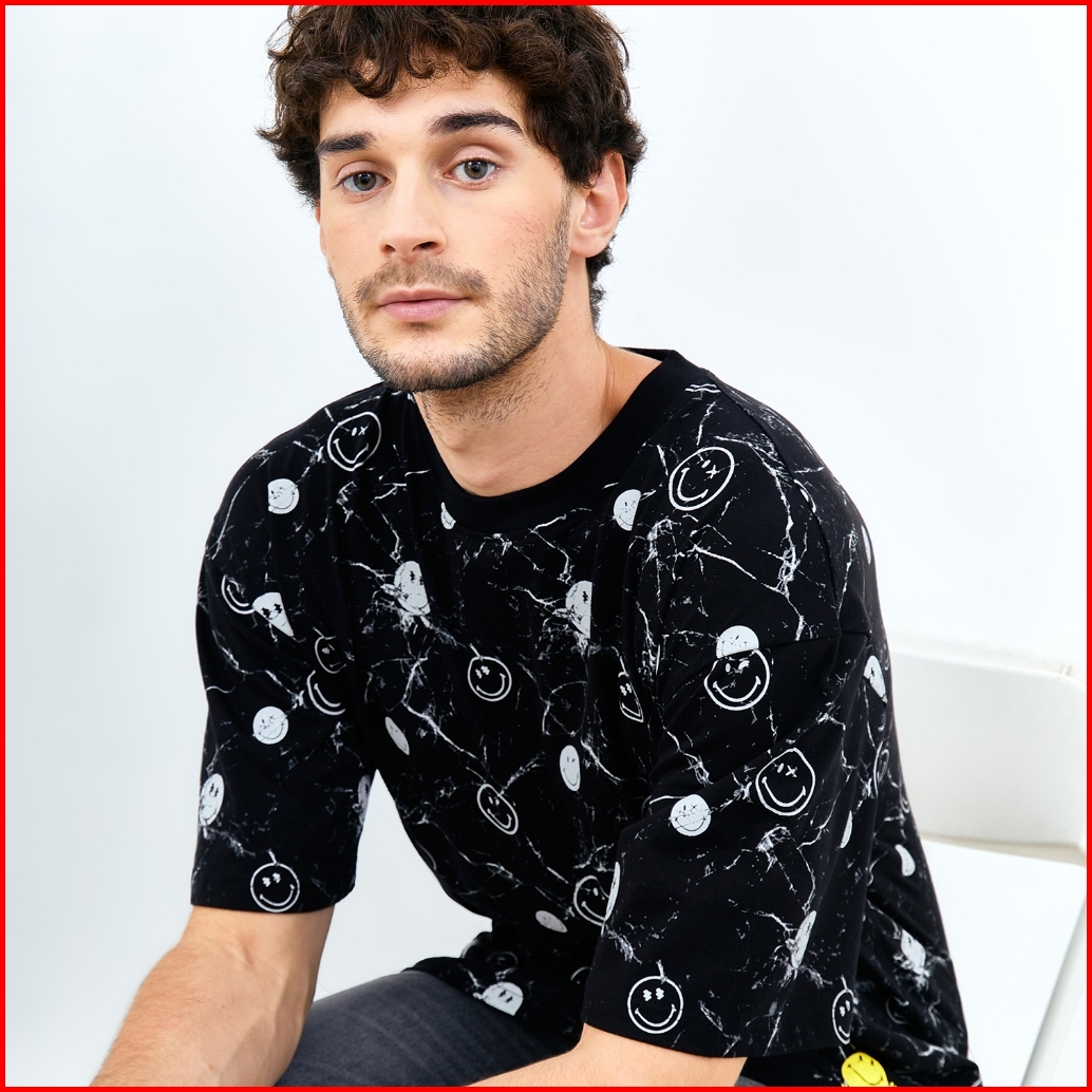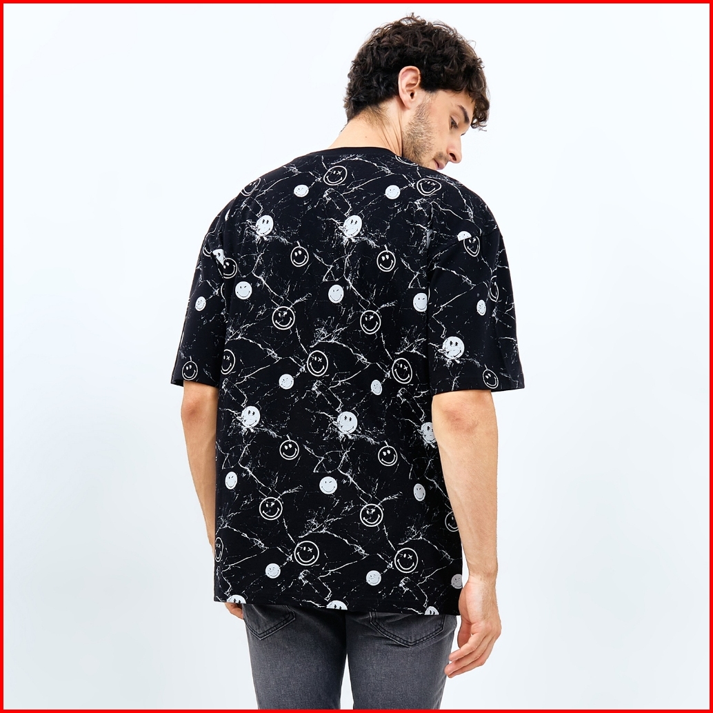 Emba Denim X Smiley World - Garrison Kaos Smiley Oversize Lengan Pendek Warna Hitam
