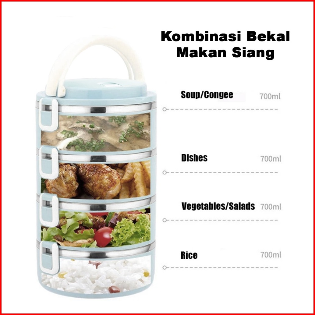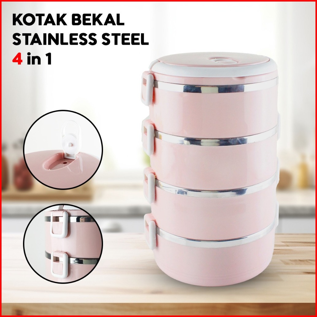Rantang Stainless Steel 4 In 1 Kotak Bekal Makan Susun Anti Tumpah Terbaru Fh-15