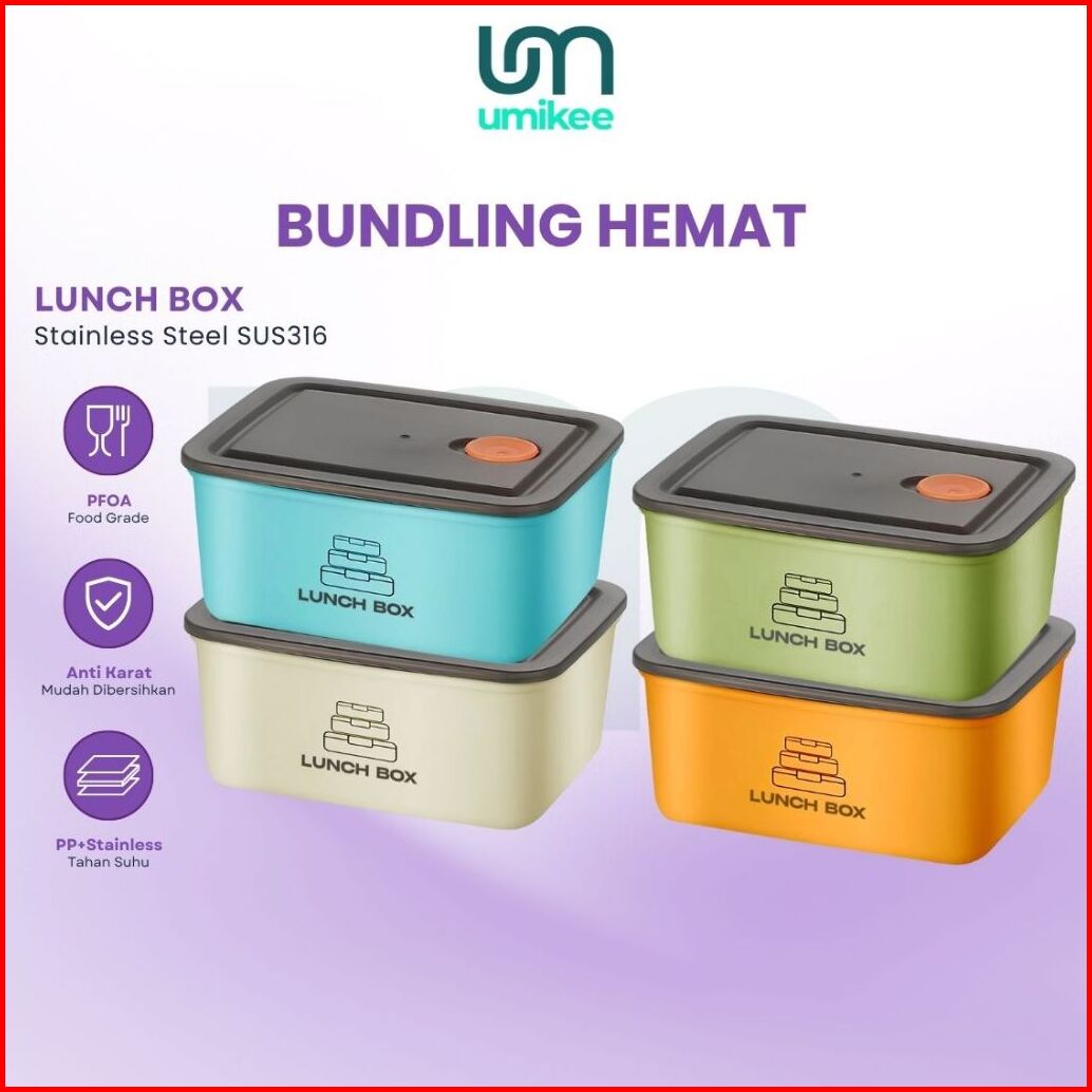 Umikee Bundling Lunch Box Kotak Bekal Penyimpanan Makanan Stainless Kontainer Box Dengan Tutup