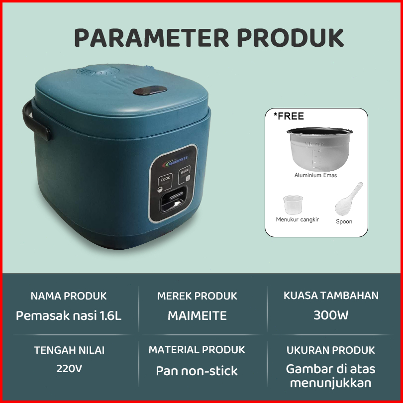 Maimeite Rice Cooker Magic Com Mini Portable Travel Versionserbaguna Anti Lengket Penanak Nasi 300watt Mtdfb-3-02 1.6l