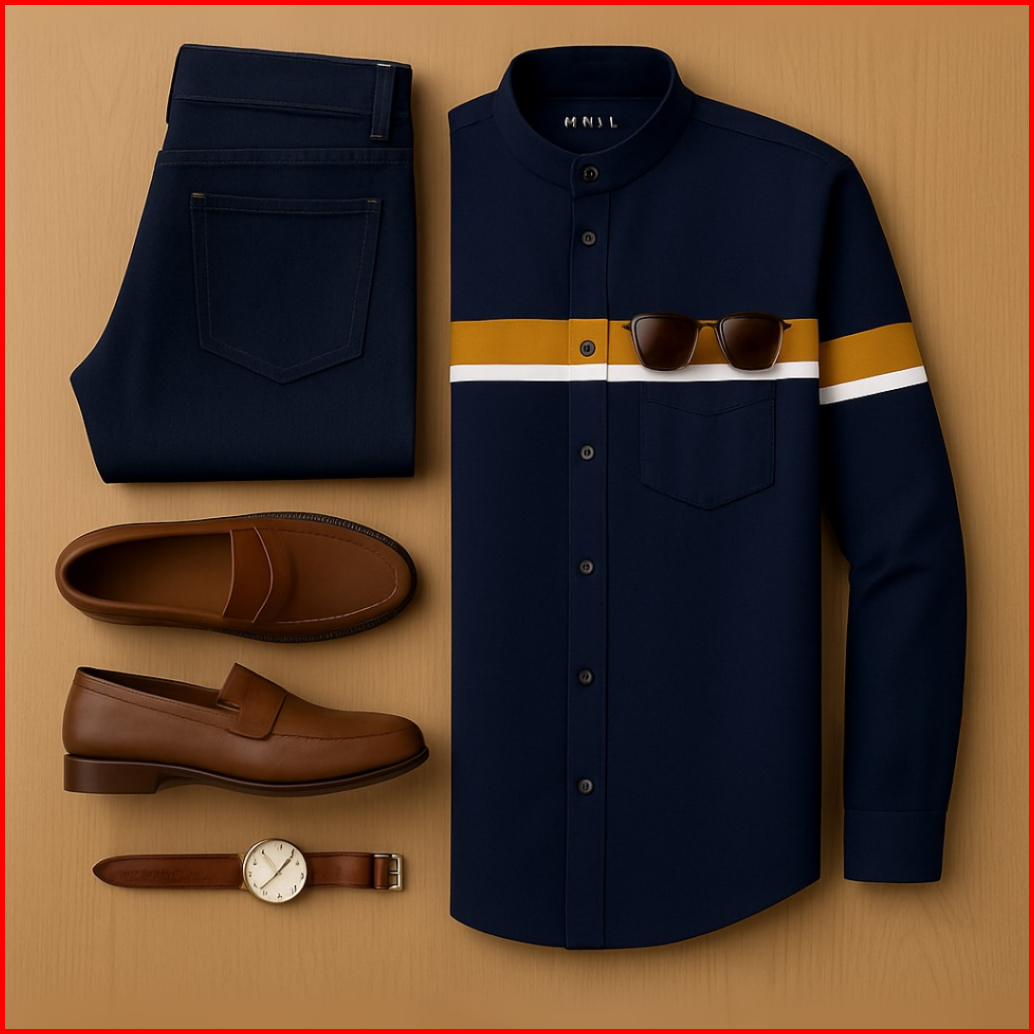 Ryusei Kemeja Pria Lengan Panjang Atsuya Navy