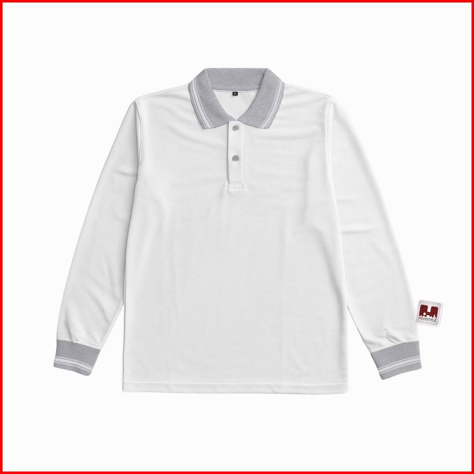 Honstyle - Kaos Seragam Polo Shirt Lengan Panjang Kaos Kerah Pria Kaos Polos Long Sleeve