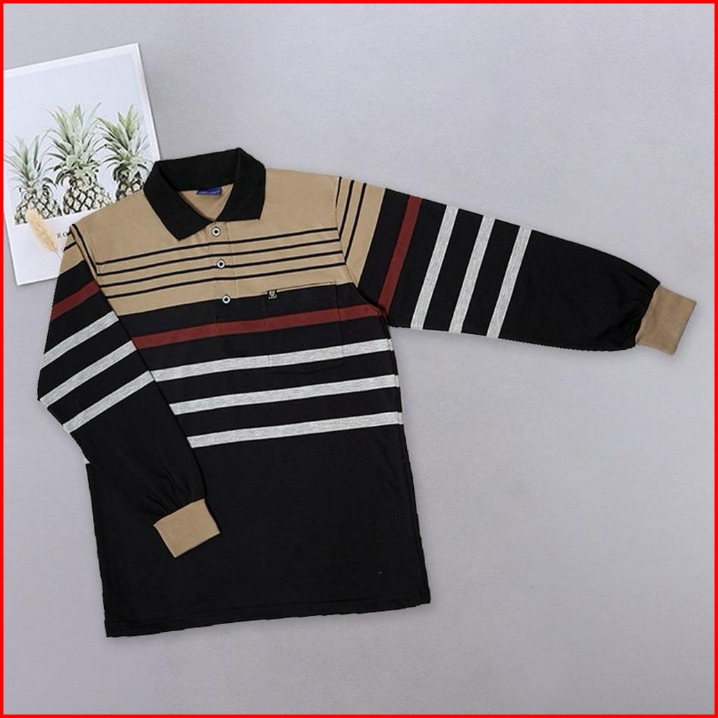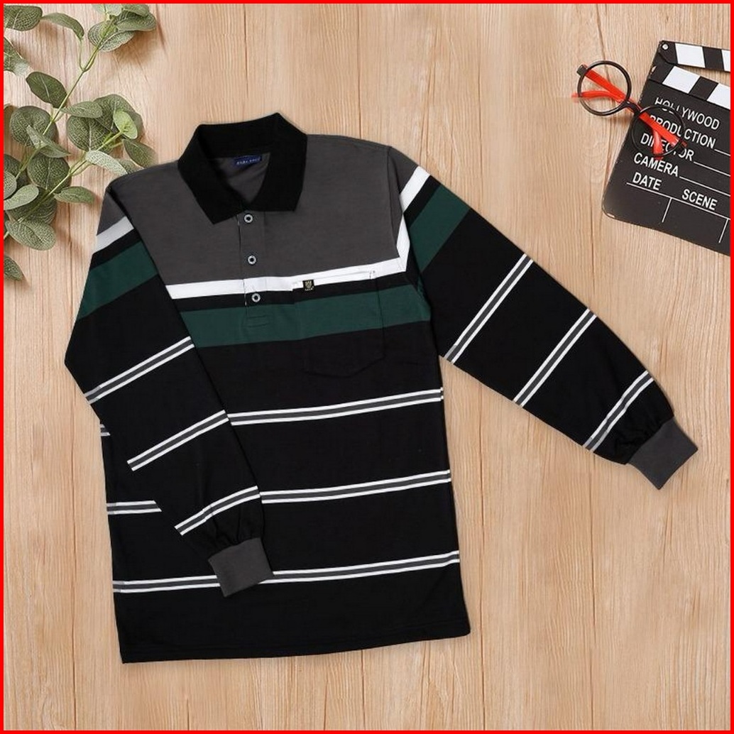 Liso Wear - Kaos Kerah Pria Stripe Engineering Kaos Kerah Salur Lengan Panjang Kd 7878