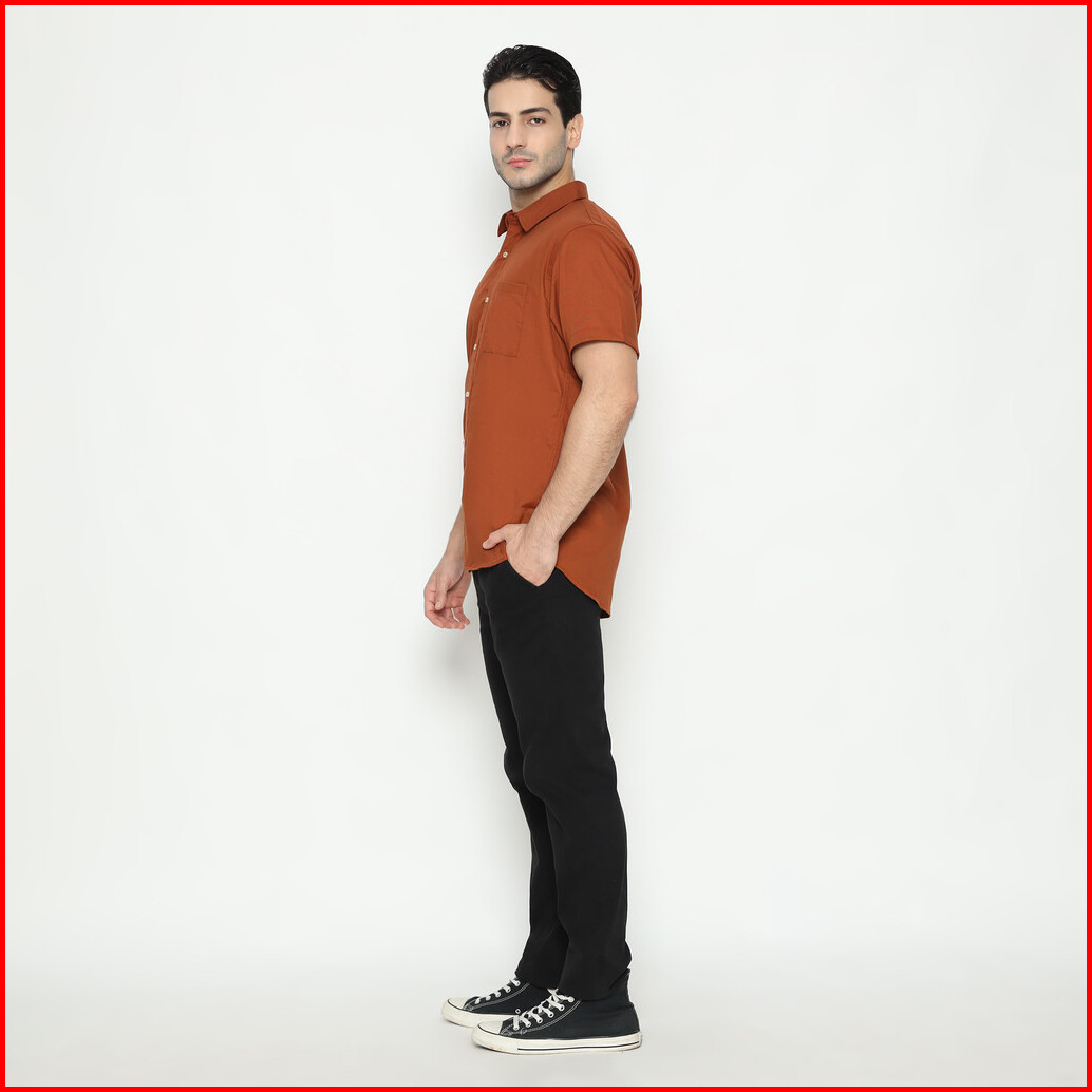 Larusso Kemeja Basic Oxford Pendek - Brick