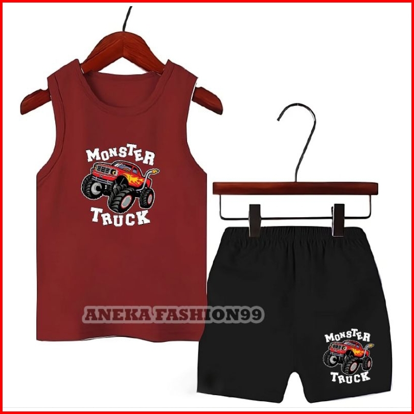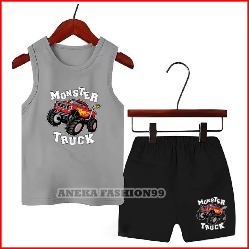 Stelan Singlet Anak-anak Usia 2-13th Motif Hotwheels Truck Monster New Hits