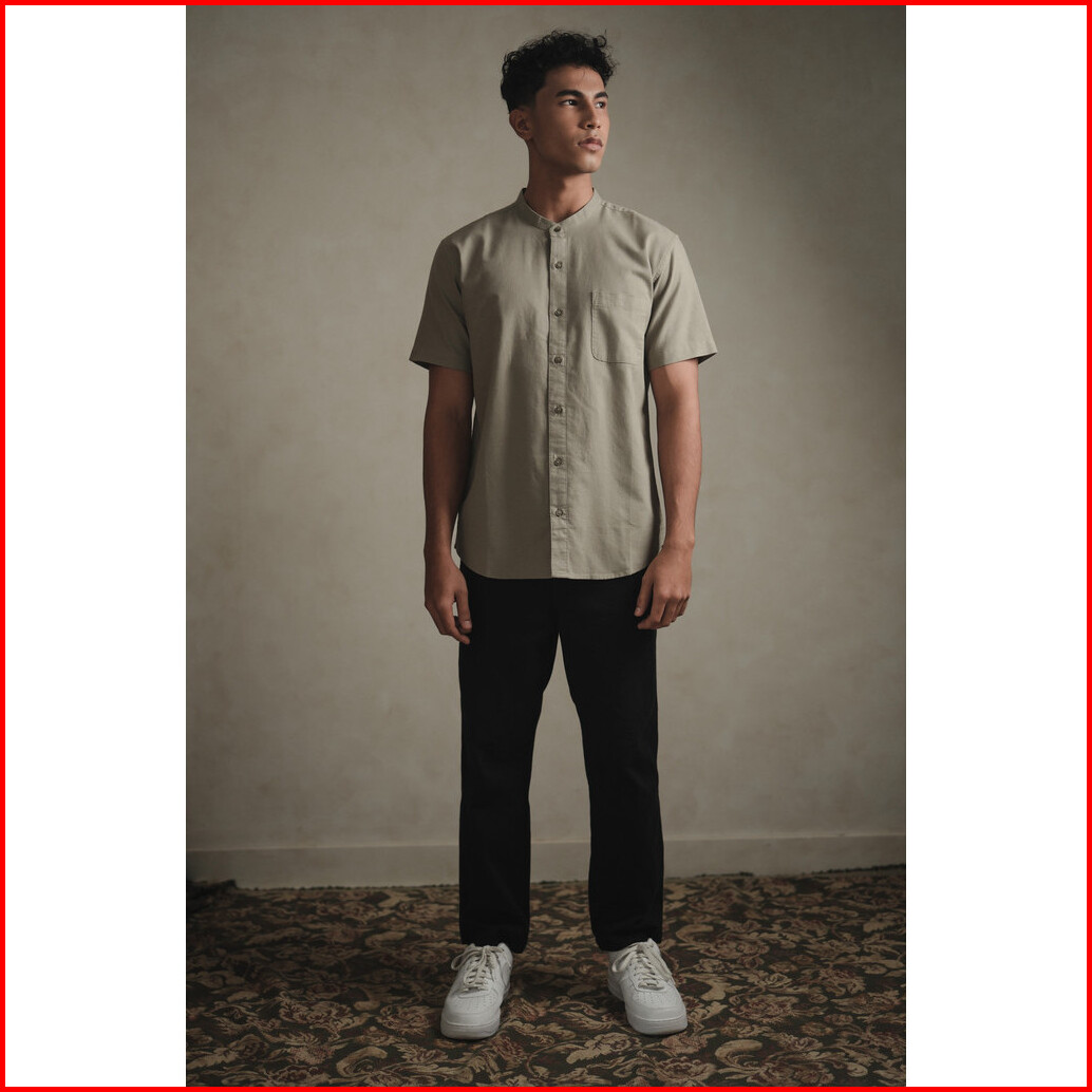 Larusso Khair Collection - Kemeja Koko Rami Basic Pria - Taupe