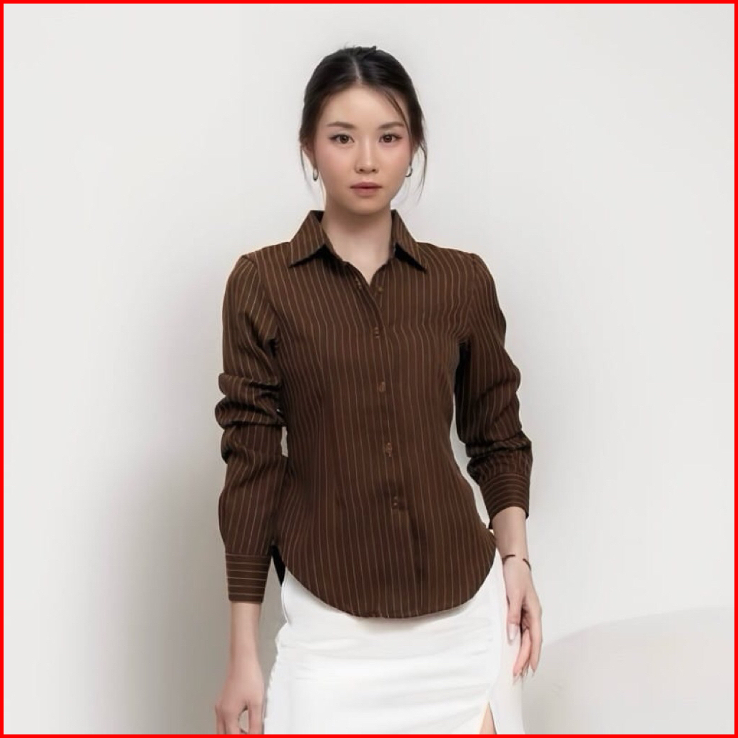 Kemeja Wanita Stripe Slim Fit Lengan Panjang