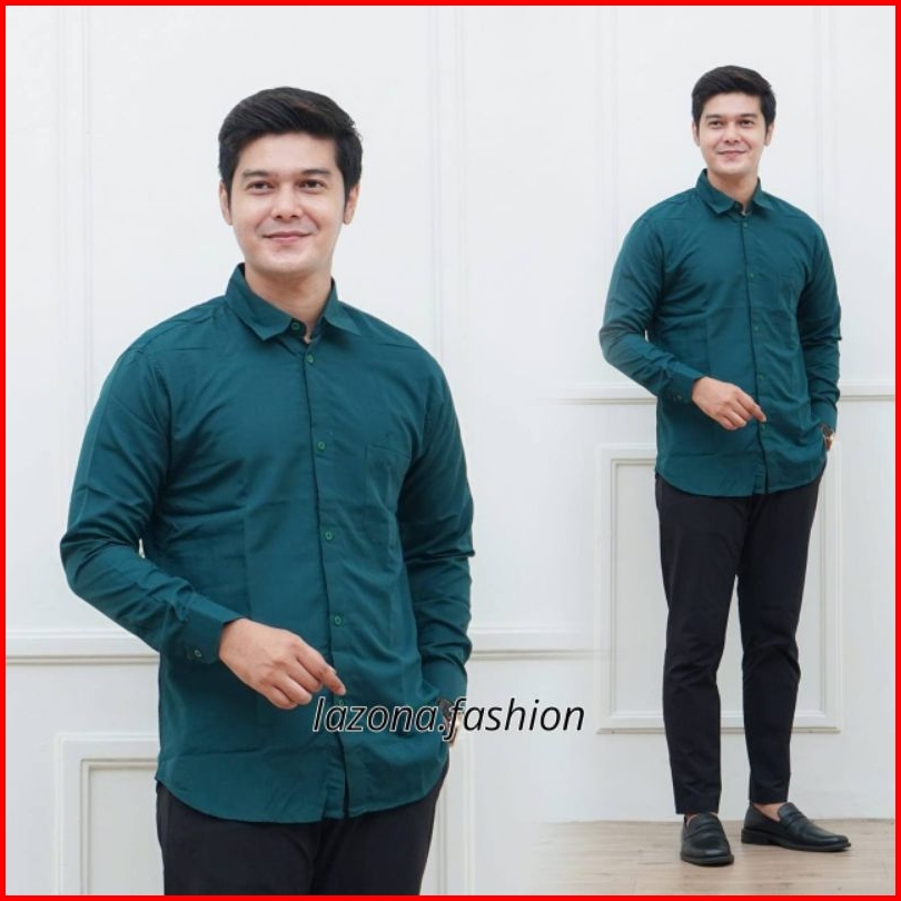 Kemeja Pria Lengan Panjang Formal Slim Bahan Katun Premium Emerald