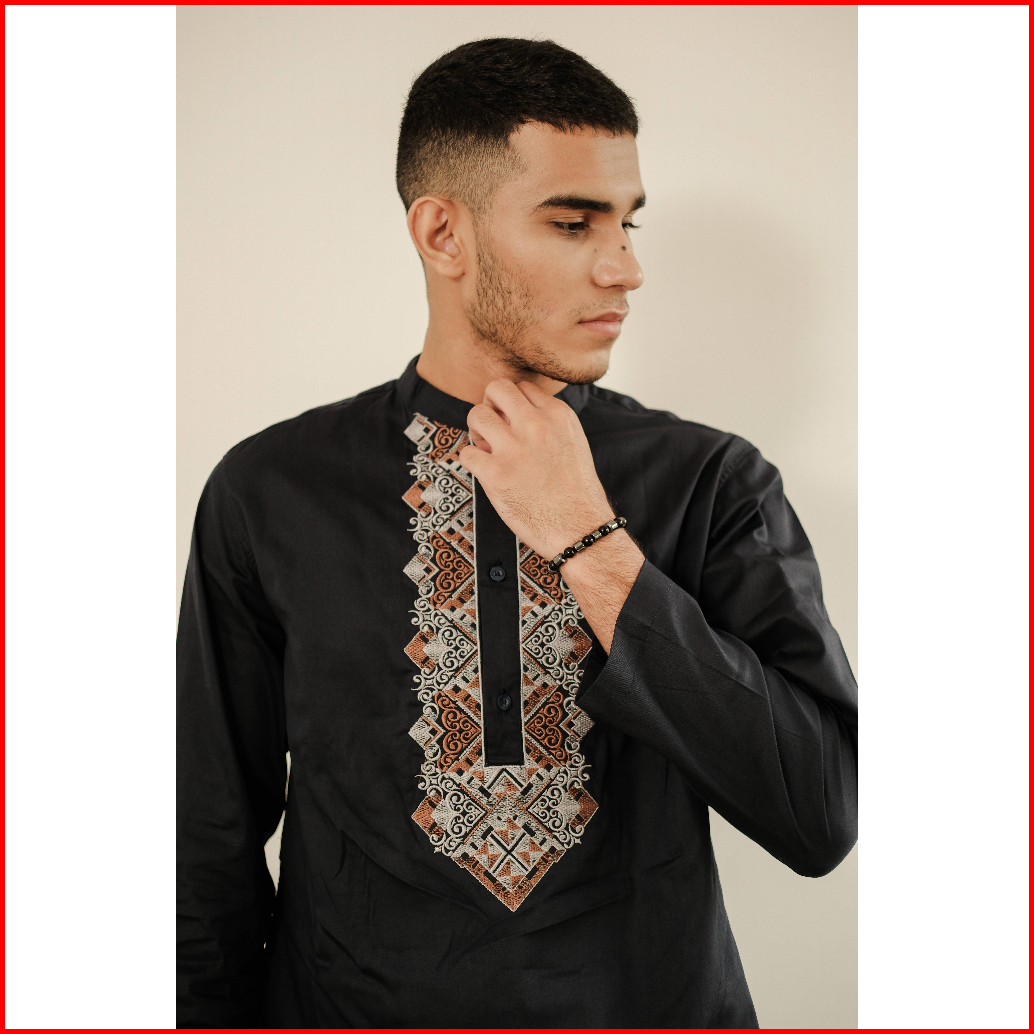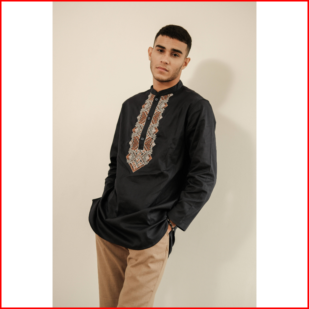 Larusso Kemeja Koko Kurta Bordir Panjang - Navy L003