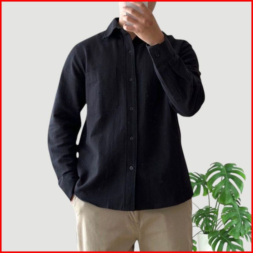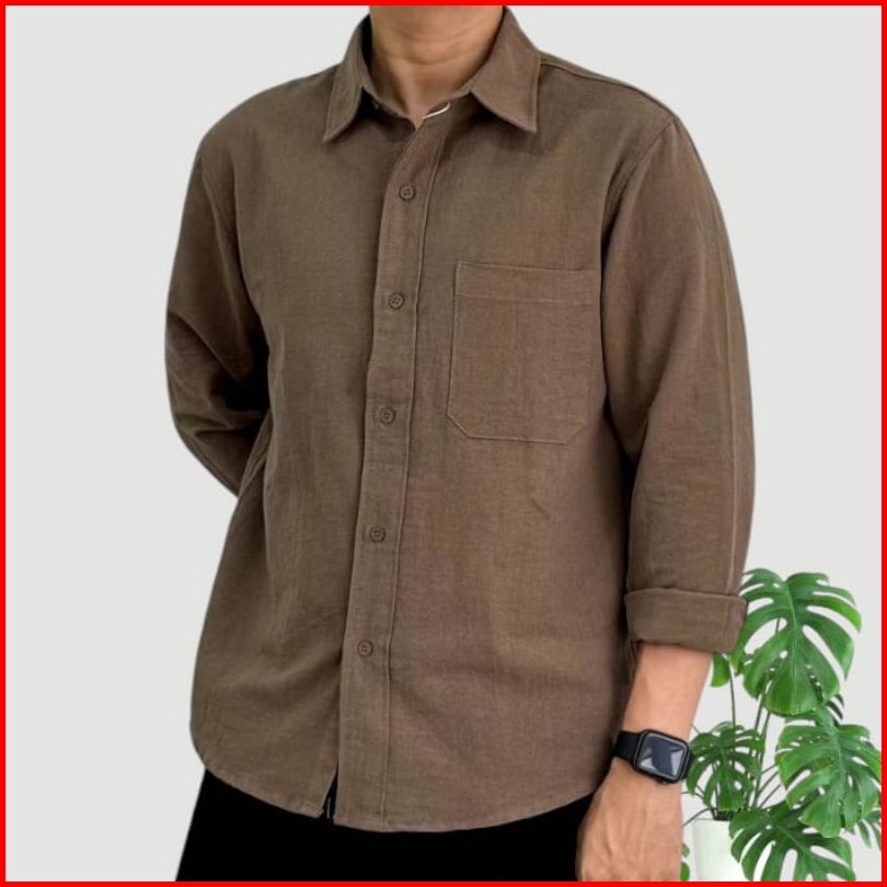Reinaclub Long Sleeve Linen Shirt Kemeja Polos Linen Pria Lengan Panjang 91