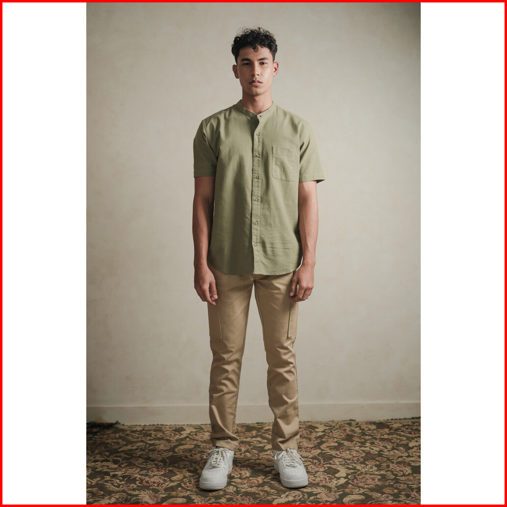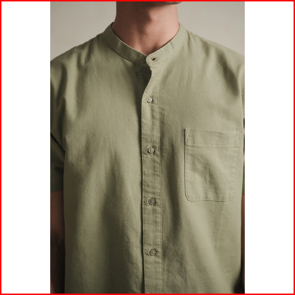 Larusso Khair Collection - Kemeja Koko Rami Basic Pria Lengan Pendek - Olive
