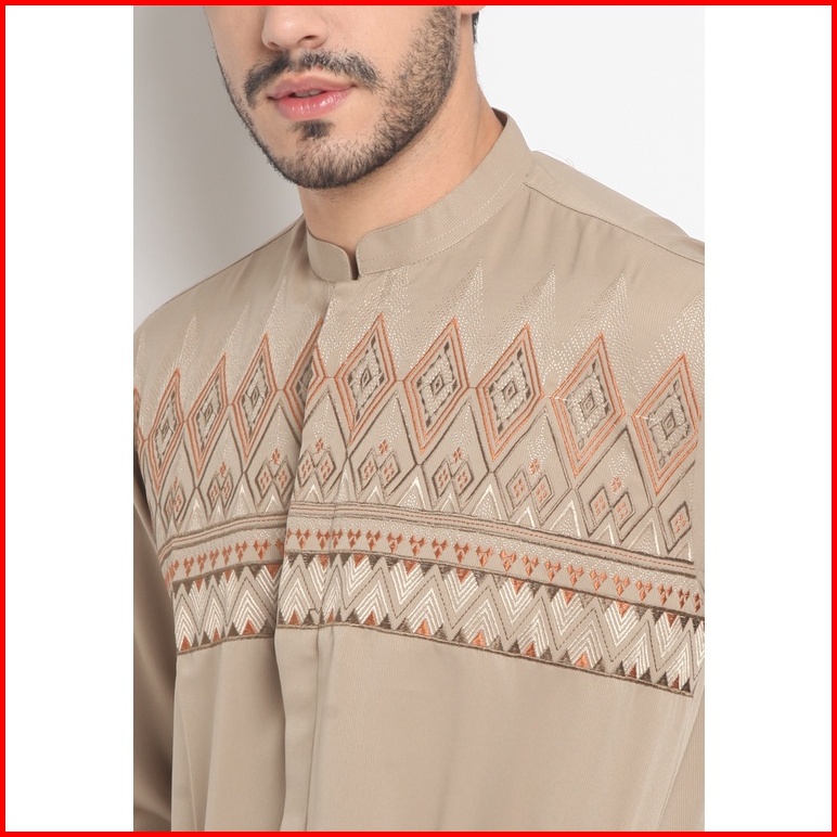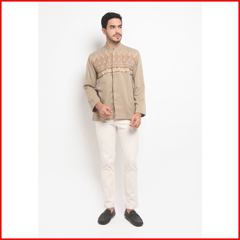 Larusso Big Size Kemeja Koko Bordir Katun Tommy Panjang - Khaki Brown L033
