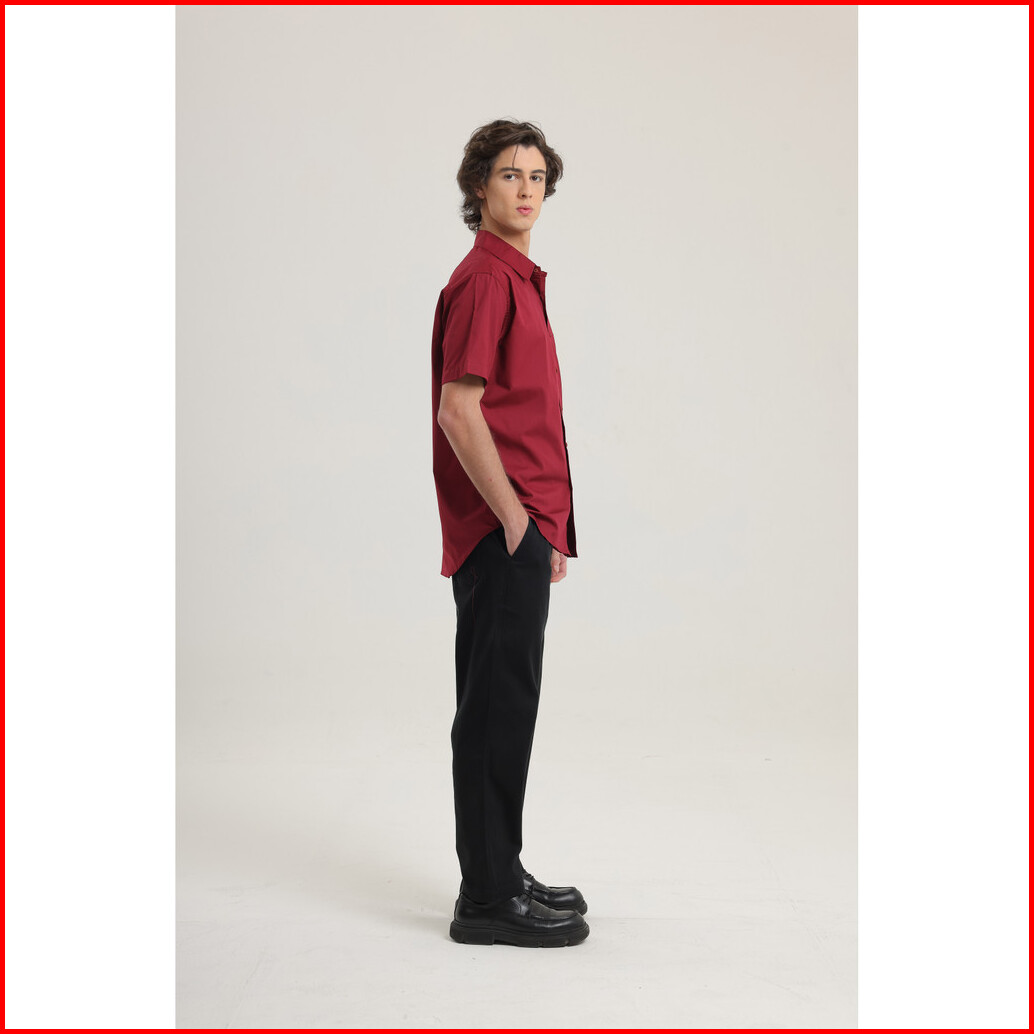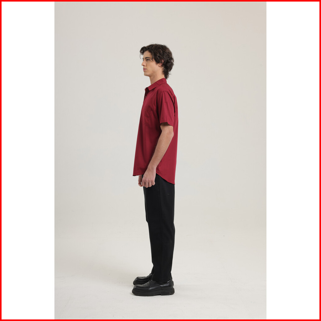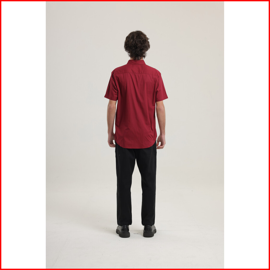 Larusso - Poplin Relaxed Short Sleeved Basic Shirt - Burgundy