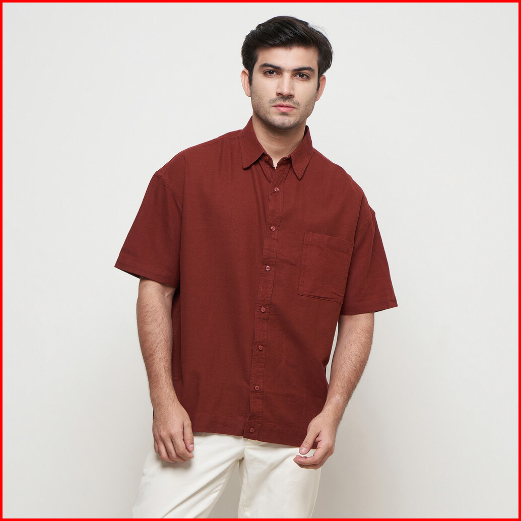 Larusso Kemeja Pria Basic Oversize Rami Lengan Pendek - Terracota N003