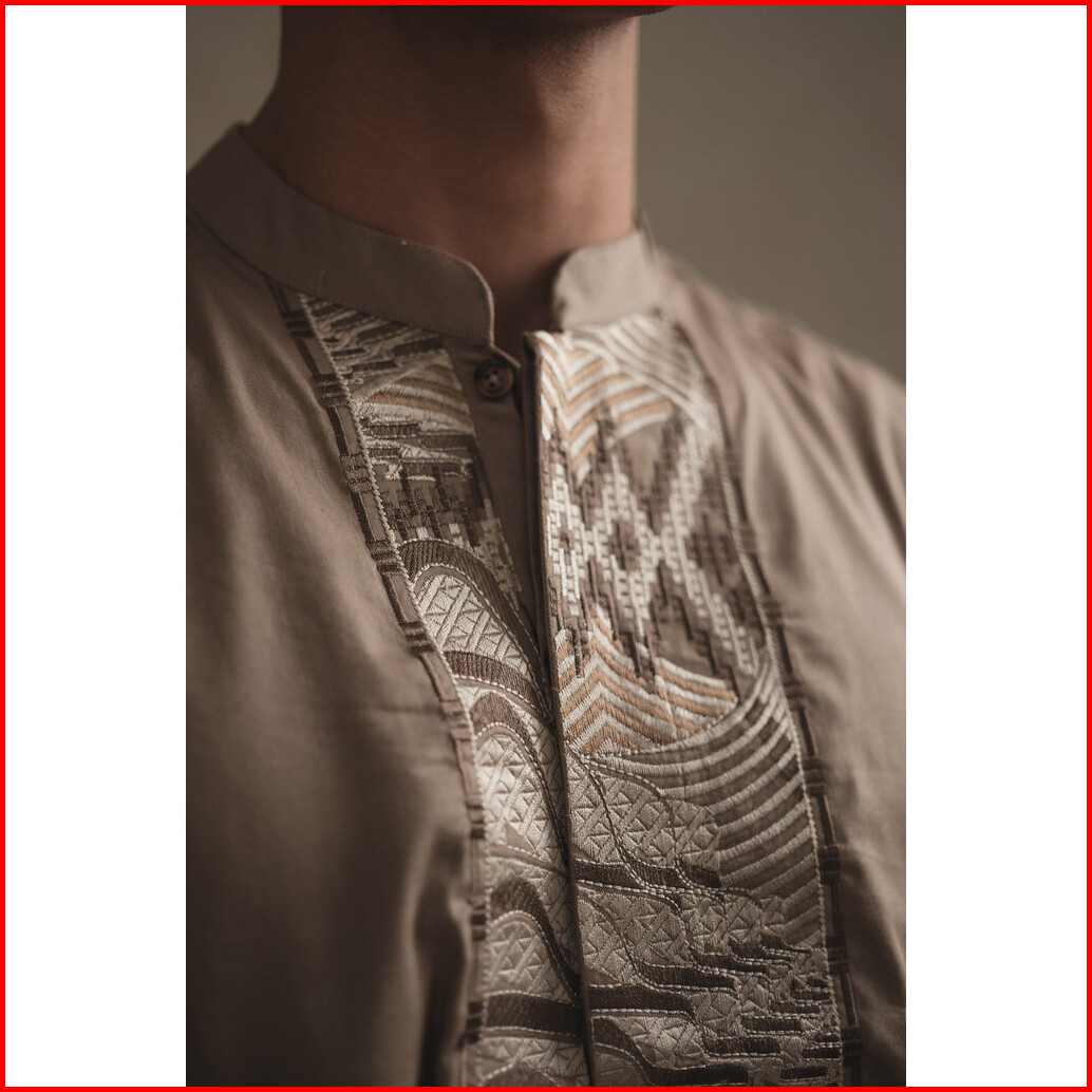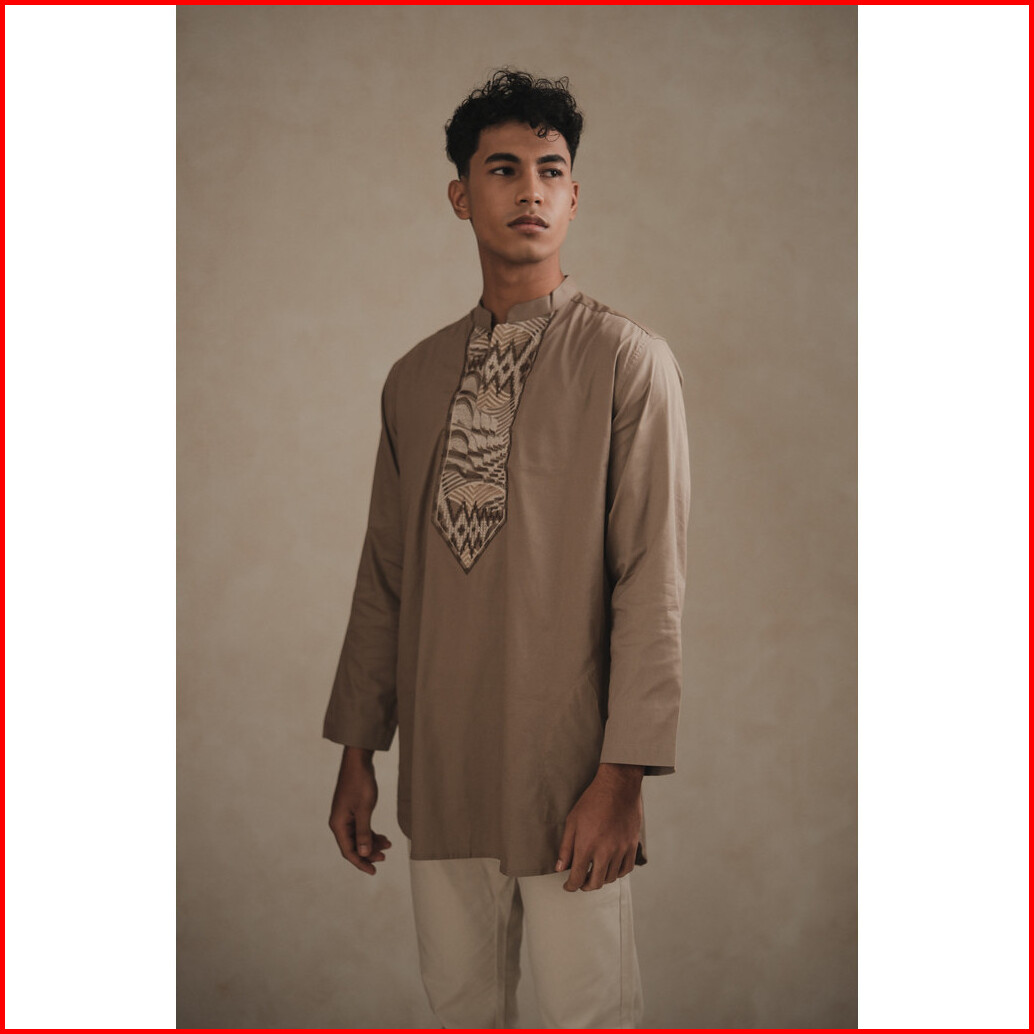 Larusso Kemeja Koko Bordir Lengan Panjang Pria - Medium Brown