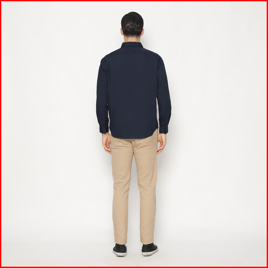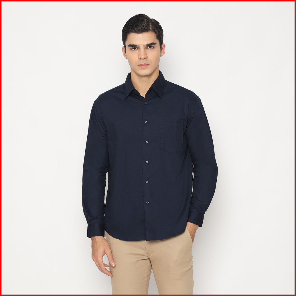 Larusso - Poplin Relaxed Long Sleeved Basic Shirt - Navy