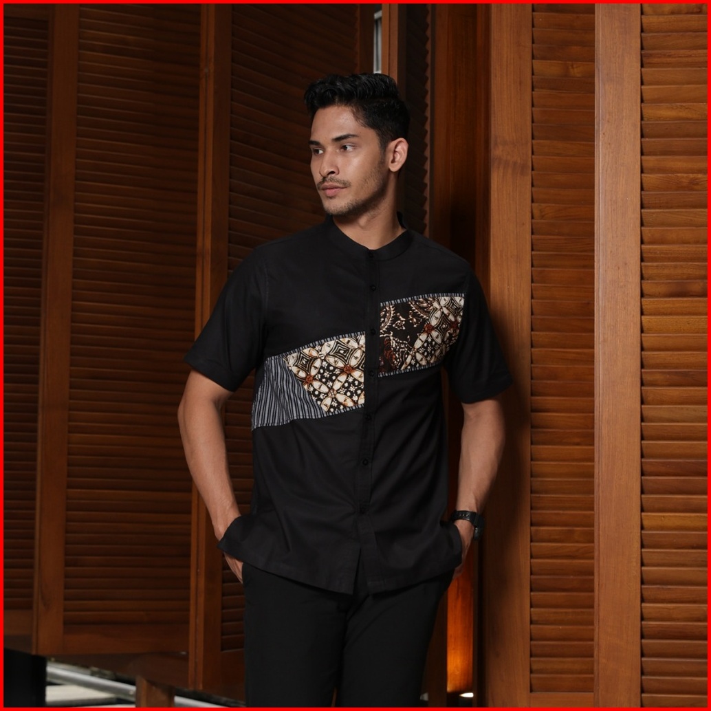 Hadinata Batik Koko Cap Pendek Fattah Black Raya Series