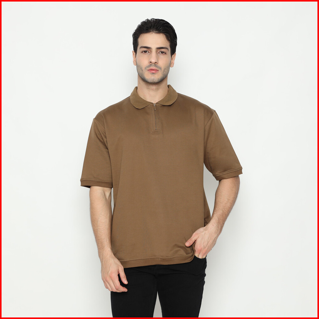 Larusso Malibu Cabana- Asher Oversize Half Zip Polo Shirt - Liquor Coffee