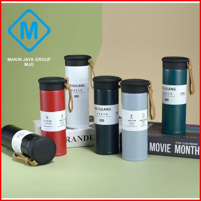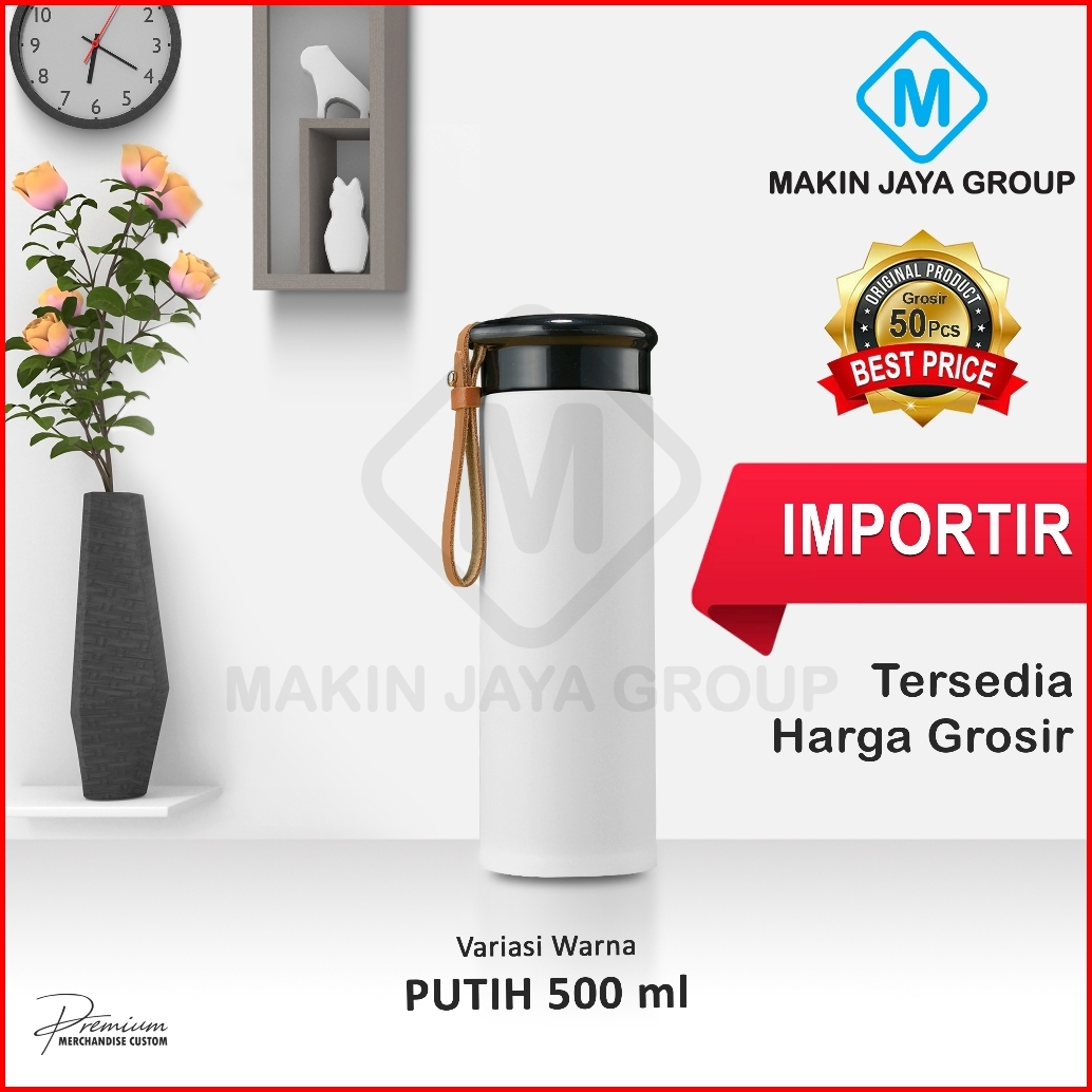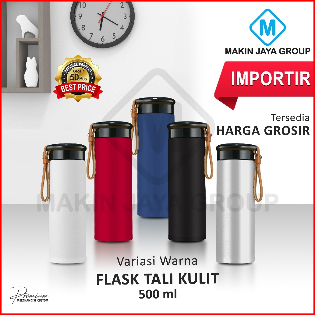 Termos Tumbler Tali Kulit Premium 500ml Bahan Stainless Sus 304 - Mjg