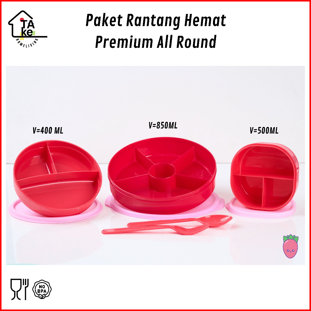 Take.homeliving Paket Rantang Hemat Premium All Round. 3 Tempat Makan Plus Bonus Sendok Garpu