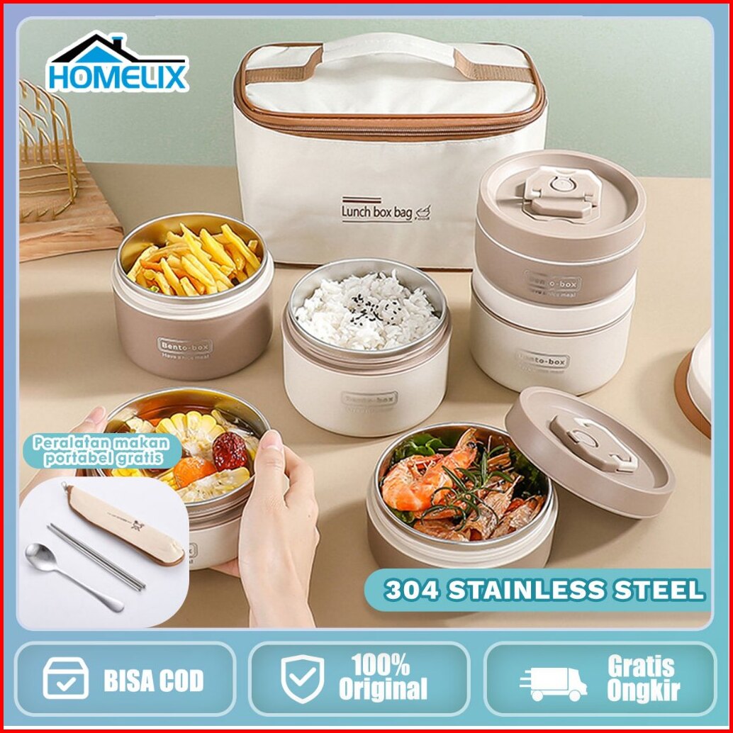 Codhomelix Kotak Makan Portable Tahan Panas Container Sealed Round Stainless Lunch Box Tahan Bocor Peralatan Makan Grati