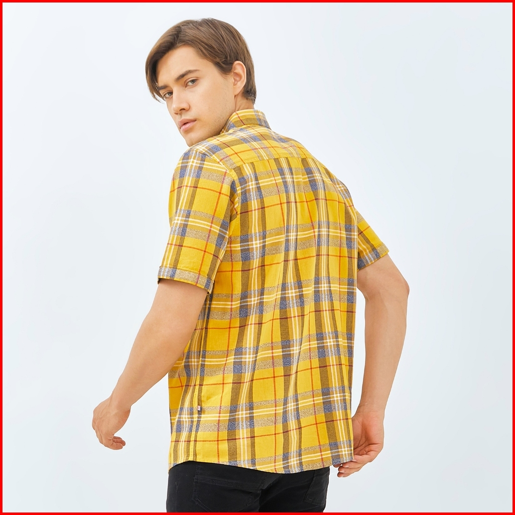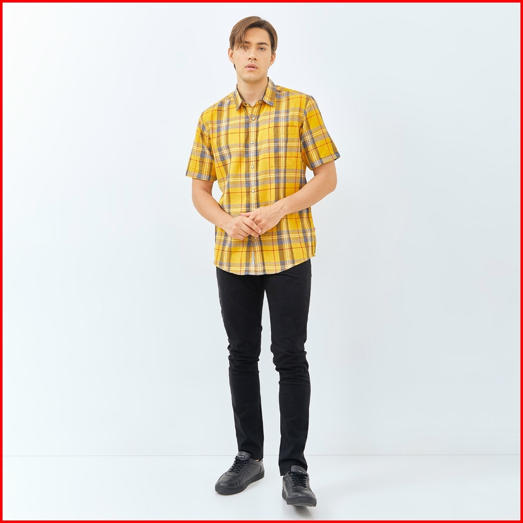 Emba Denim - Teddler Kemeja Flanel Regular Fit Lengan Pendek Motif Kotak Warna Kuning