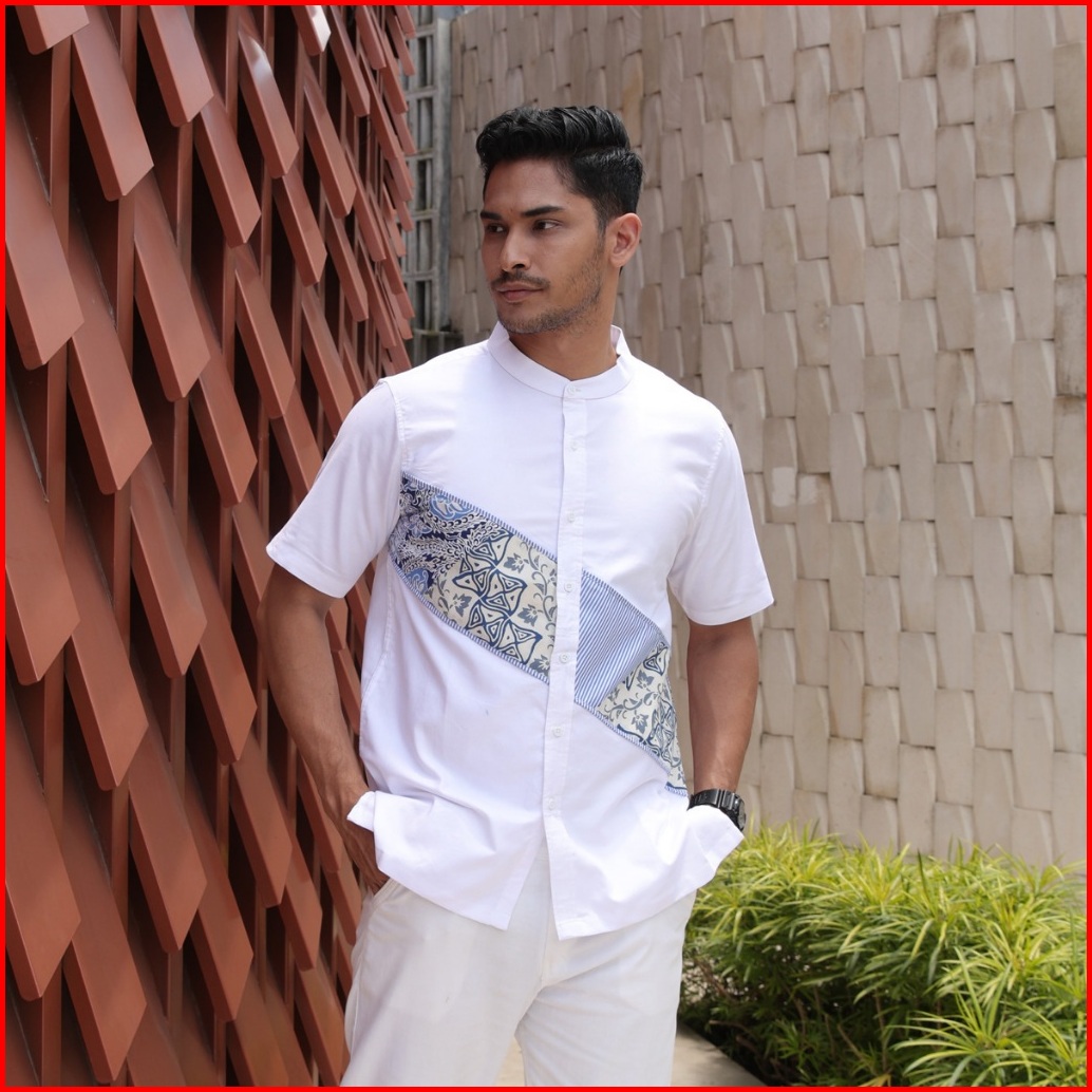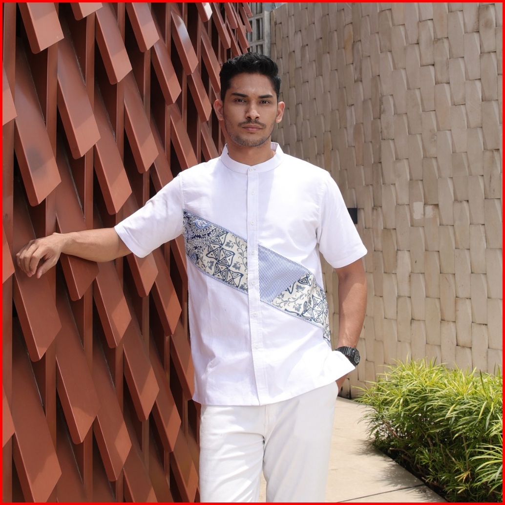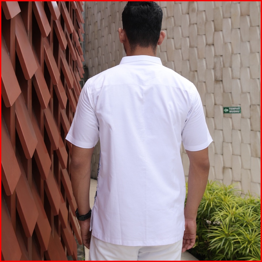 Hadinata Batik Koko Cap Pendek Azriel White Raya Series