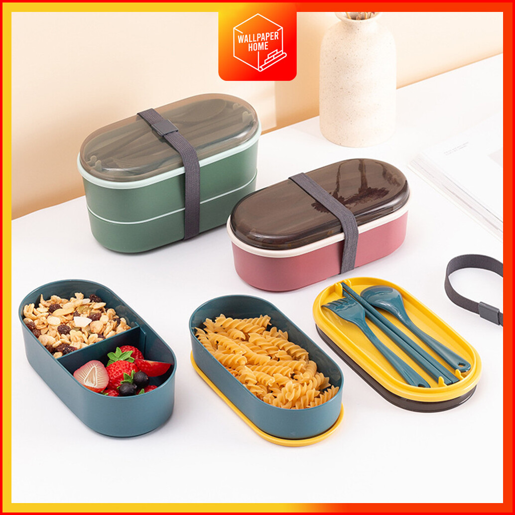 Kotak Makan Siang 700ml Desain Dua Lapis Pekerja Kantoran Pelajar Microwaveable