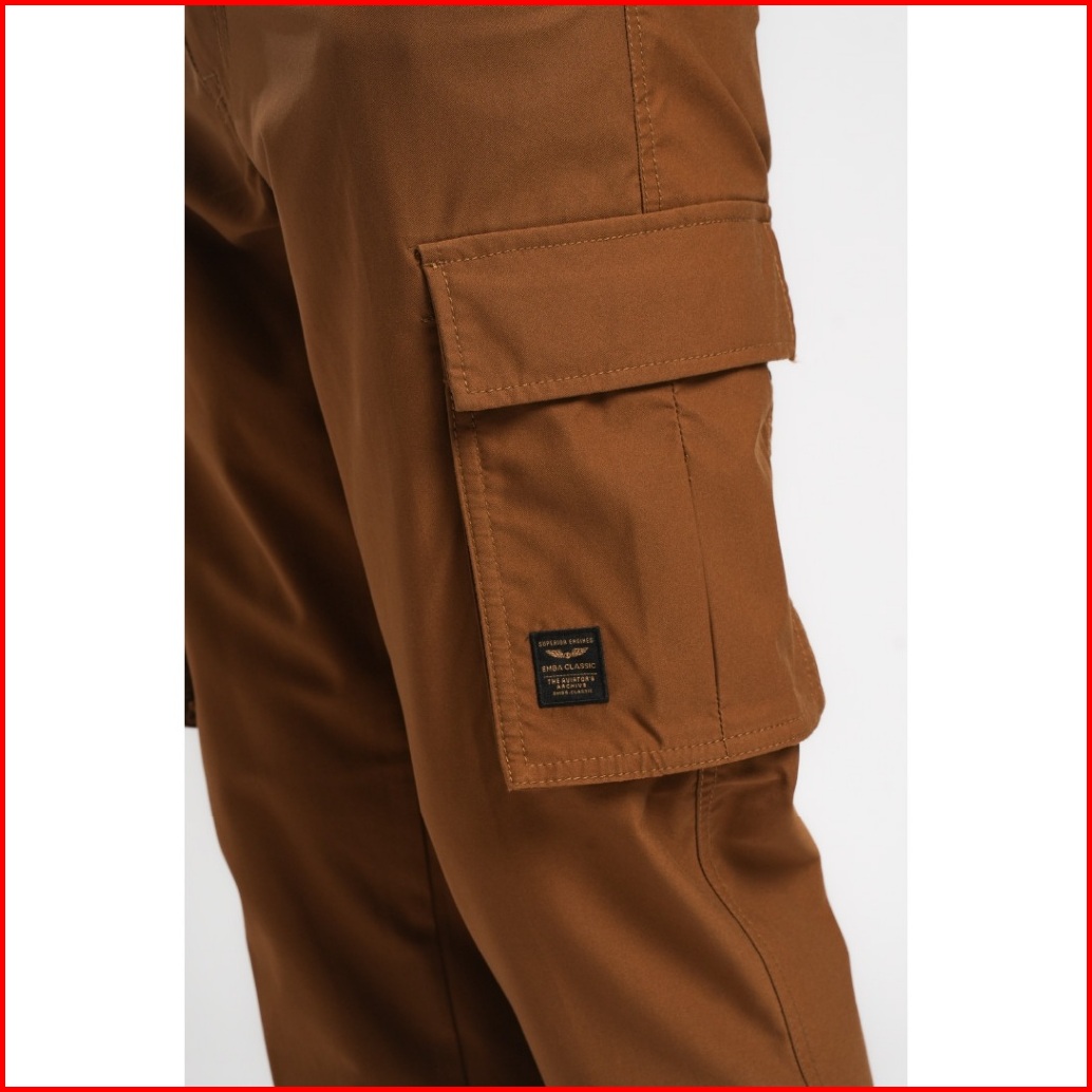 Emba Classic - Exwork Celana Panjang Pria Cargo Warna Dark Brown