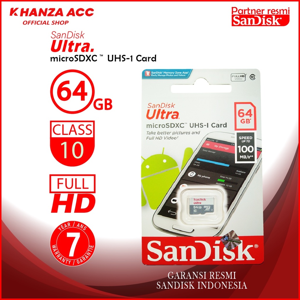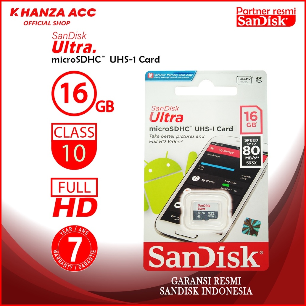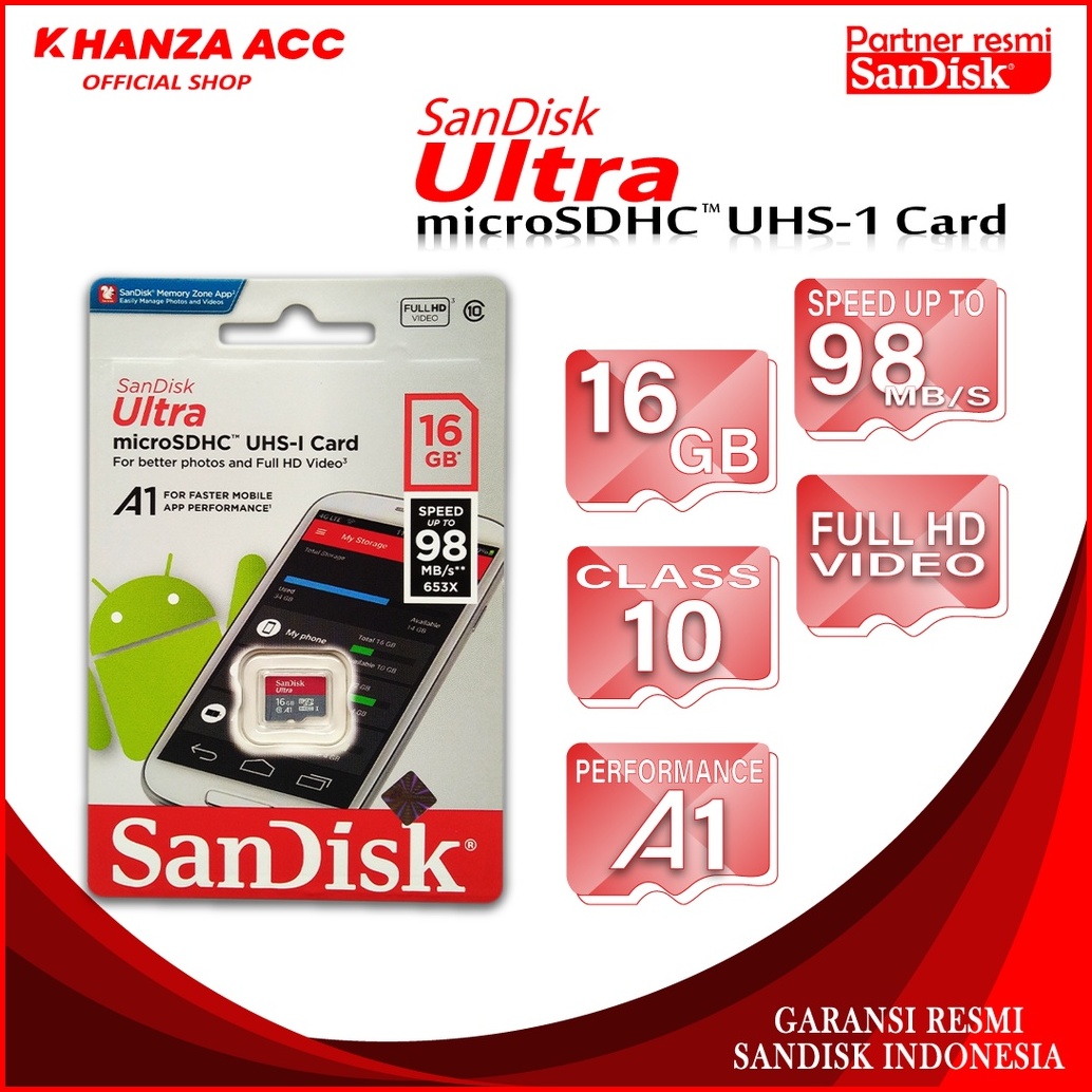 Khanzaacc Sandisk Memory Hp Micro Sd Ultra Class 10 Memori Card 16gb 32gb 64gb 128gb