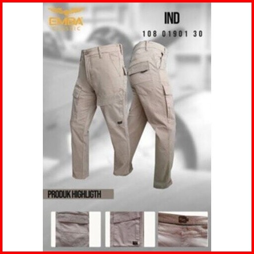 Emba Classic - Ind Celana Panjang Pria Cargo Slim Warna Sand