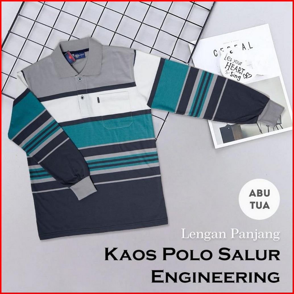 Noveli Wear - Kaos Kerah Pria Dewasa Motip Salur Engineering Stripe Saku Lengan Panjang 7878