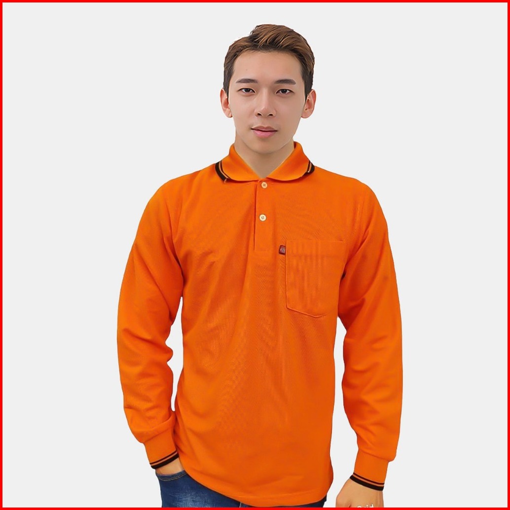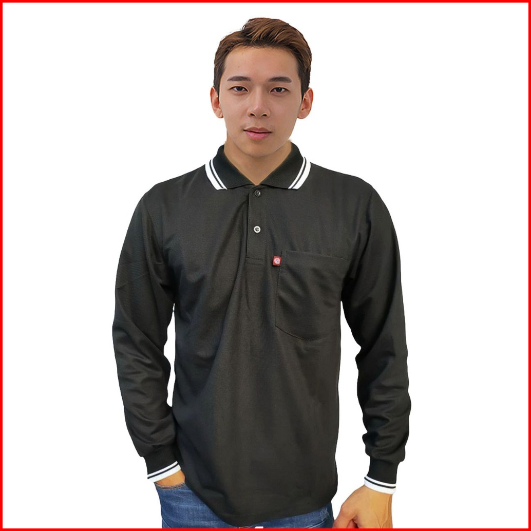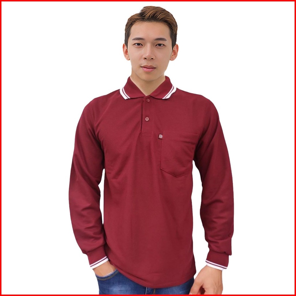 Noveli Wear - Baju Kaos Polo Shirt Pria Lengan Panjang Atasan Seragam Polos Saku Kerah Lis