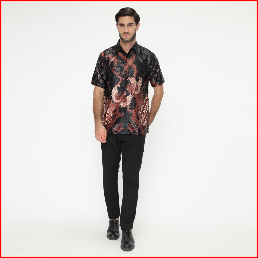 Hadinata Batik Pria Kemeja Pendek Furing Semi Sutra Indrayana Inaya