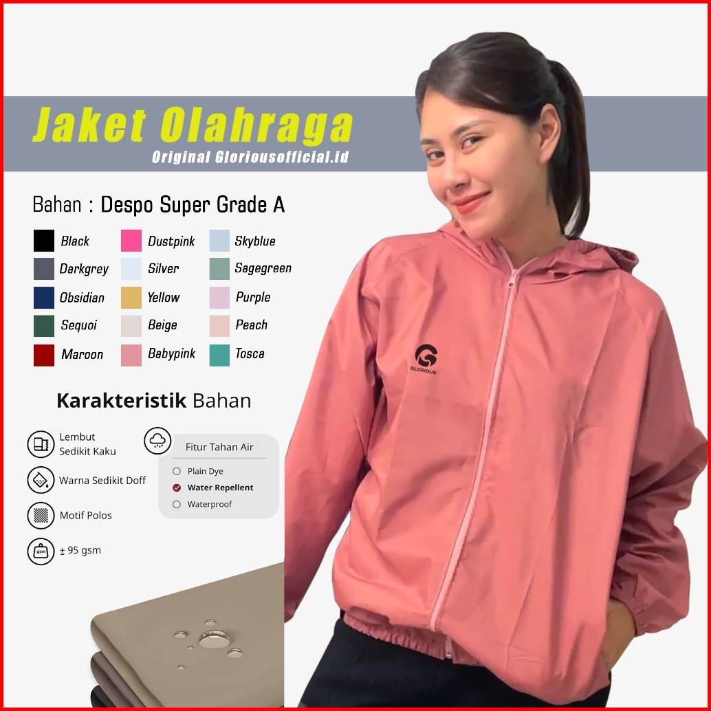 Jaket Parasut Olahraga Wanita Casual Sport Jaket Anti Uv Olahraga Jaket Olahraga Running Lari Fitness Pria Wanita Glorio
