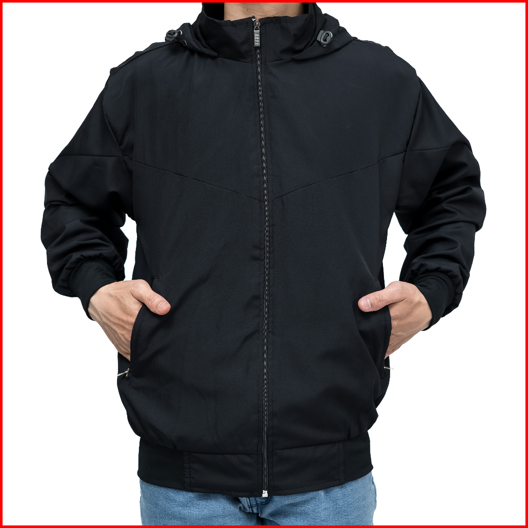 Go Shopping - Jaket Parasut Olahraga Polos Hitam Jacket Lari Running Pria Wanita