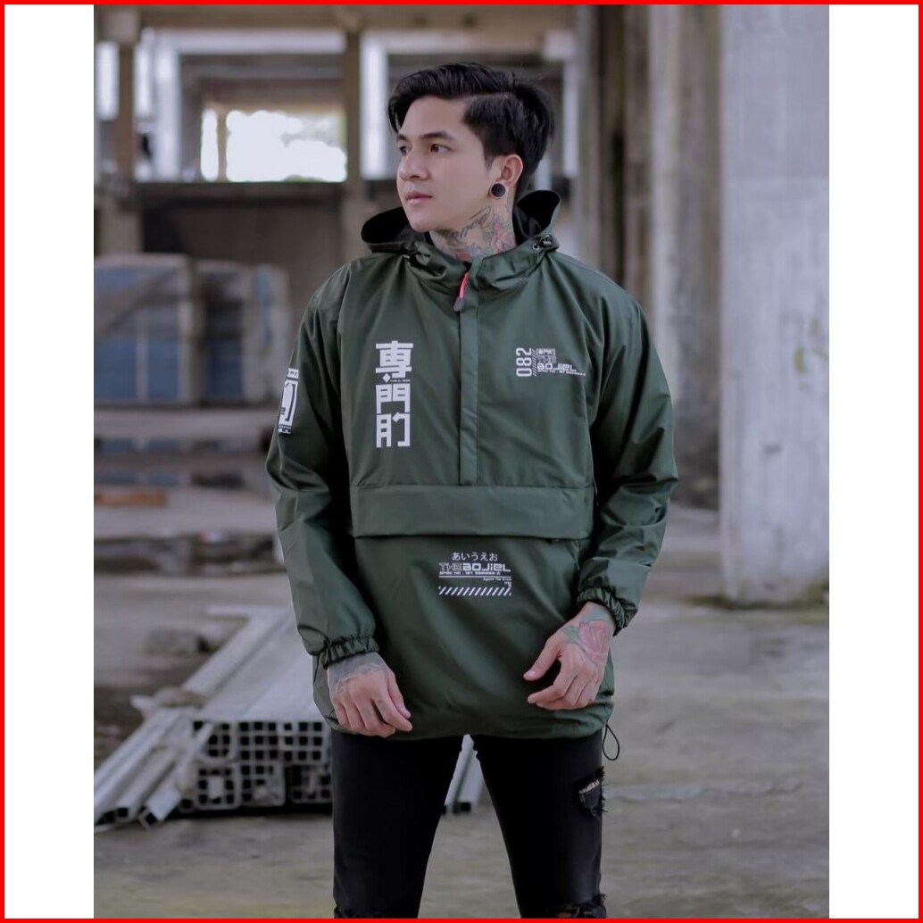 Sixteen - Jaket Parasut Pria Wanita Cagoule Jepang Kanji Waterproof Windbreaker Original The Bojiel