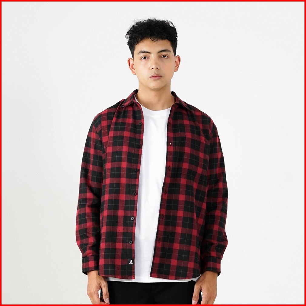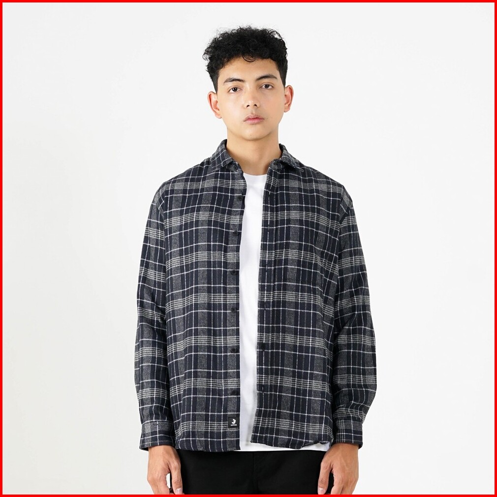 3second Kemeja Kotak-kotak Pria Flanel Plaid Lengan Panjang Regular Fit Preto Ol-c010225