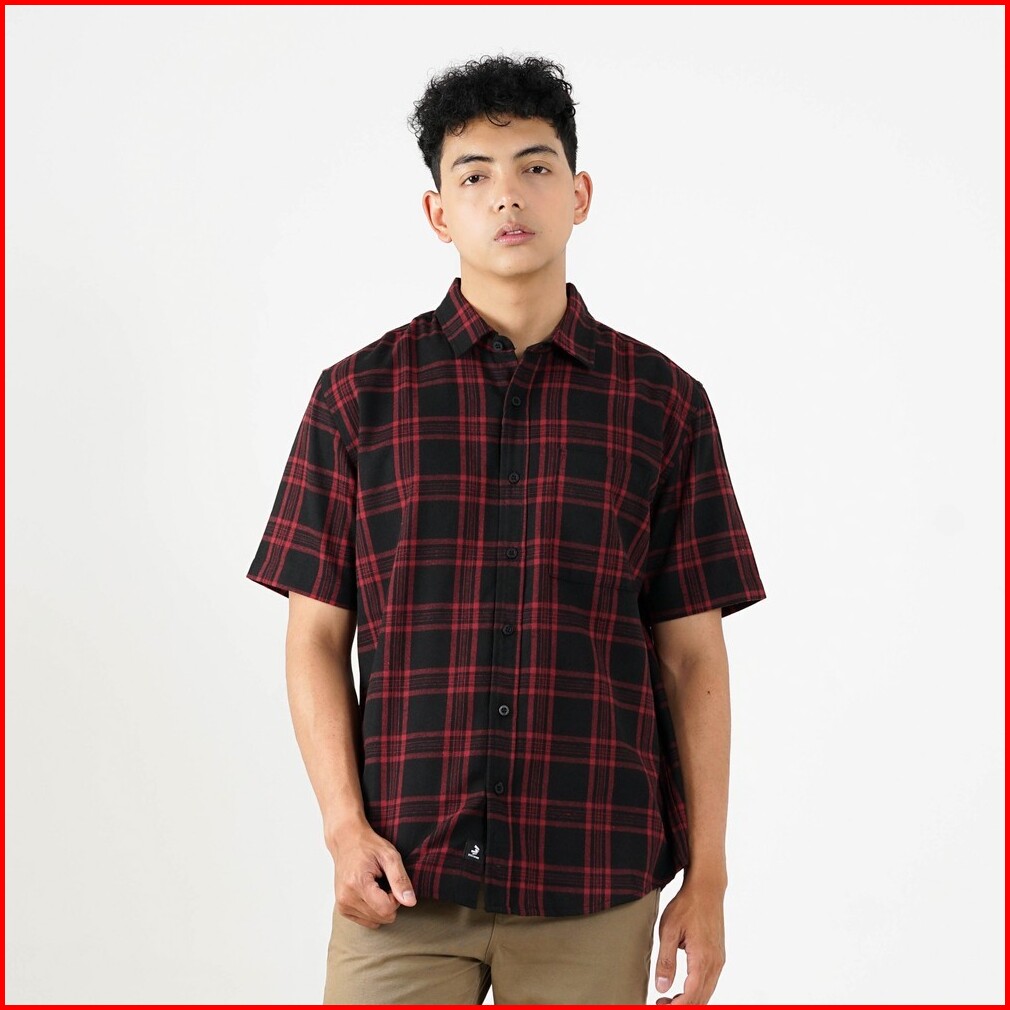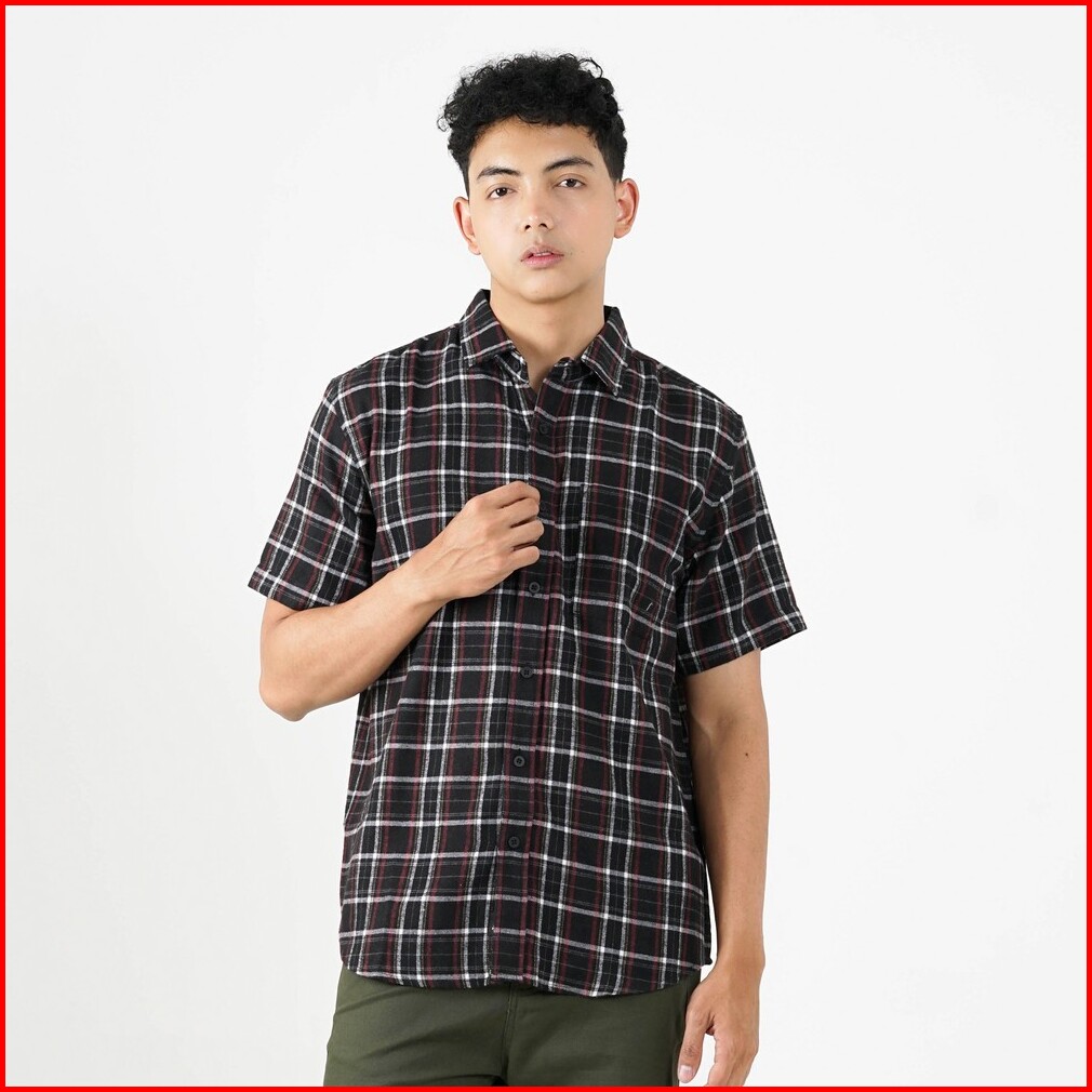3second Kemeja Kotak-kotak Pria Flanel Plaid Lengan Pendek Regular Fit Rico Ol-c040225