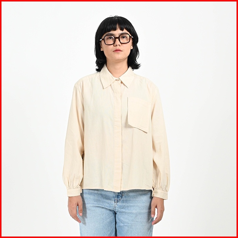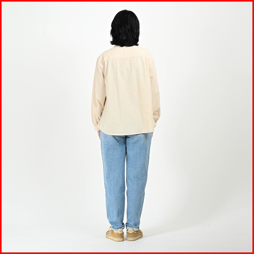 Greenlight Basic Blouse Wanita Katun Linen Plain Shirt Baju Atasan Blus Lengan Panjang 120423