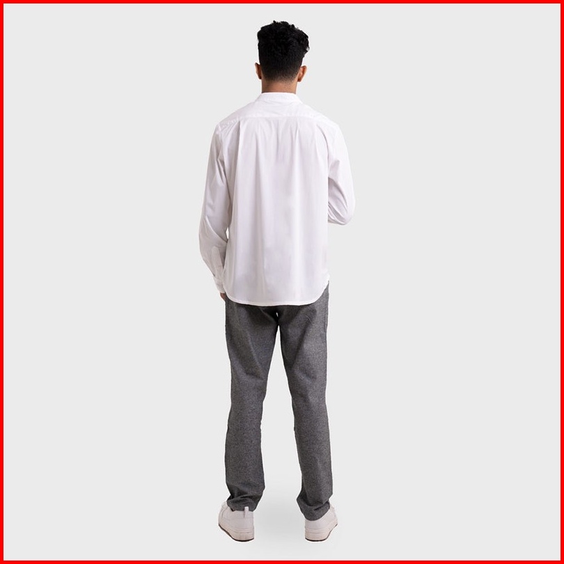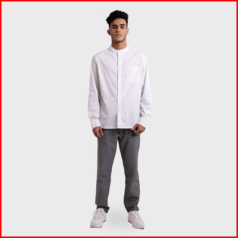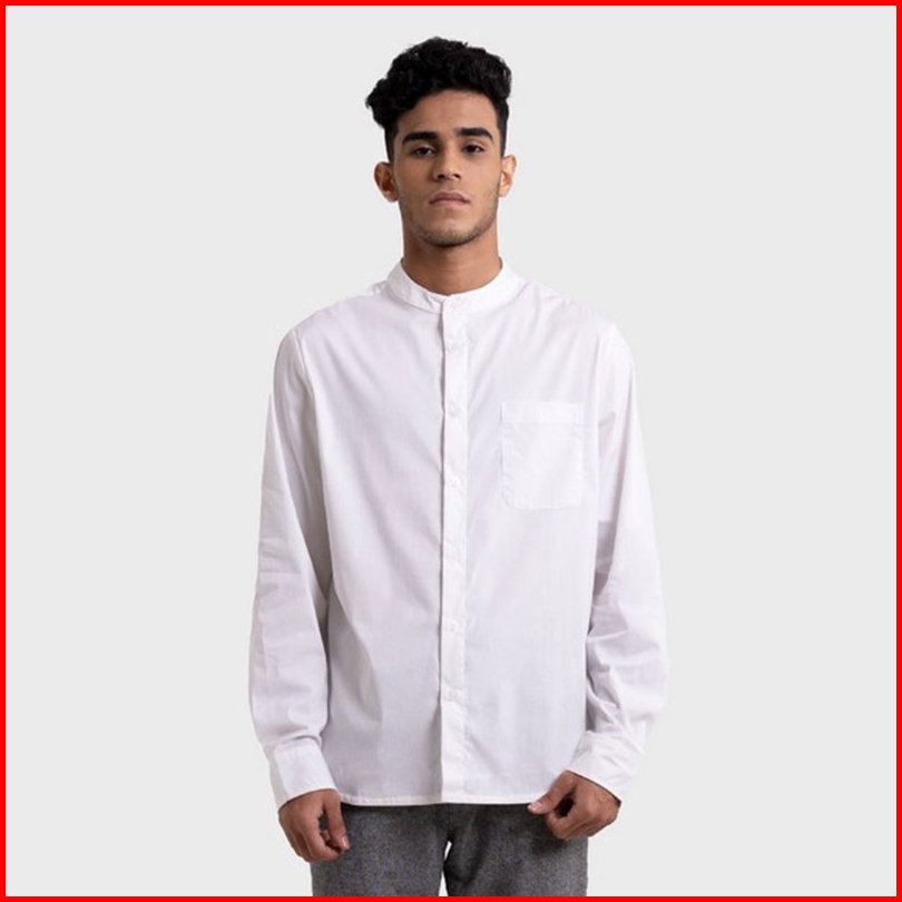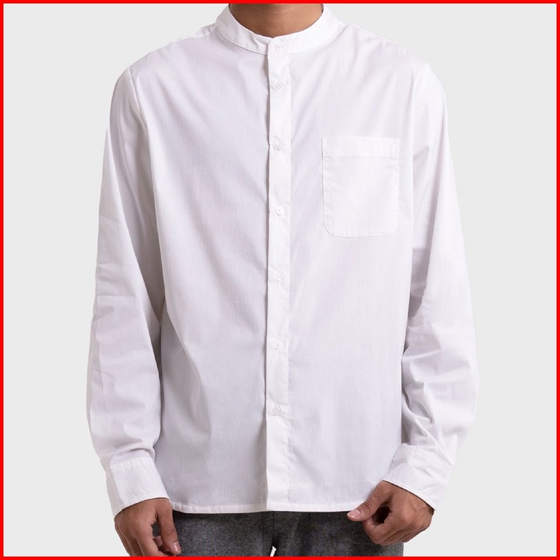 Famo Kemeja Pria Kerah Changi Mandarin Collar Polos Putih Basic Pria 110123