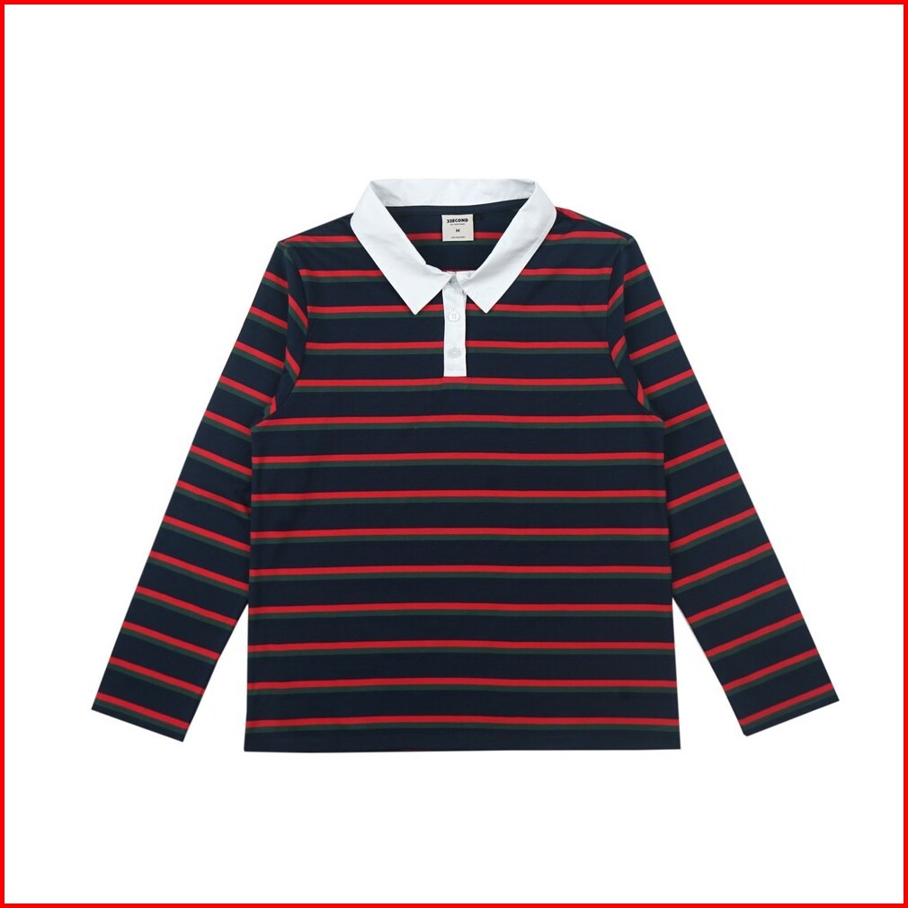 3second Kaos Kerah Wanita Lengan Panjang Regular Fit Stripe Tee Geneva Hp-c101224